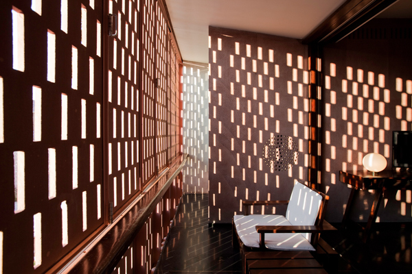 Inspired by the age-old double-skinned structures of the region–the traditional stone-latticed jharokhaform of Rajasthani architecture, which perform multiple functions of passive cooling and offering privacy to the user–these buildings act as lanterns framing the site. The drama of the stone jaali(lattice) is heightened by the fact that these panels can be folded away by each guest to reveal uninterrupted views of the fort, or can be closed for privacy and to keep the harsh Jodhpur sun out.