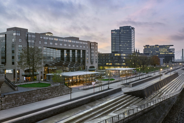 Schon seit 25 Jahren ist die Entwicklung des rechtsrheinischen Kölns mit vielfältigen öffentlichen Nutzungen Gatermann + Schossig Architekten ein Anliegen. 1992 gewann das Büro den Wettbewerb für die Verwaltung LVR und das 2006 fertiggestellte KölnTriangle Hochhaus für die RVK , von dem die Besucher auf der öffentlichen Plattform ein grandioses Panorama geboten bekommen. Mit der Fertigstellung der Pavillons am Hyatt ist ein weiterer Baustein der rechtsrheinischen Kölner Stadtentwicklung geschaffen, der mit seiner Nutzung und Gestaltung zur öffentlichen Attraktivität der Stadt beiträgt.