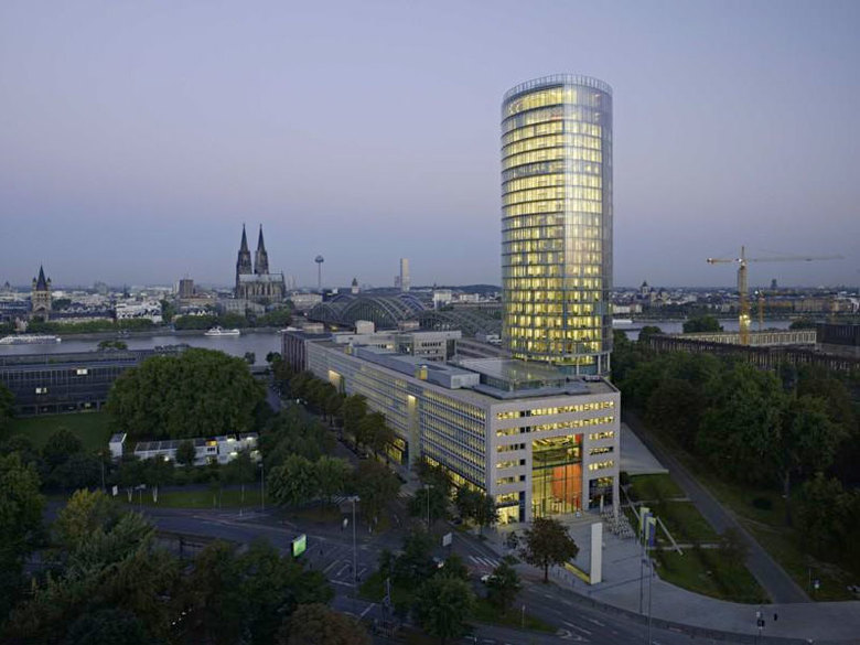 Aus einem Wettbewerbserfolg von 1992 hervorgegangen und 2006 fertiggestellt, wird das KölnTriangle Hochhaus vor allem durch seine Reuleux-Form geprägt. Der wankelförmige Grundriss ergibt in Verbindung mit dem runden Kern fließend variierende Raumtiefen. Dies ermöglicht bei der Ausgestaltung der Räume große Freiheiten in der Wahl zwischen Großraum, Kombi- oder Einzelbüros. Die drei konvex gebogenen Elementfassaden führen unter energetischen Gesichtspunkten, wie Wind und Sonne, zu einer optimierten Fassade. Die nach Süden orientierte hinterlüftete Doppelfassade mit tiefen Lamellen, bietet optimalen Sonnenschutz ohne Beeinträchtigung der Aussicht. Nach aussen zu öffnende BUS-gesteuerte, fassadenintegrierte Kiemenfenster in den zwei Monofassaden sorgen für zusätzlichen Komfortgewinn und Frischluftzufuhr im Gebäude. Ein geschossweise differenziertes System aus Bauteilaktivierung, Geothermie, Wärme-rückgewinnung und dezentralem Lüftungssystem führt zu einem geringen Jahres-Primärenergiebedarf von 45,62 kWh/m²a. Die für Events ausgestattete 600 m² große Glashalle im Erdgeschoss bildet zusammen mit dem begrünten Innenhof den Eingang und das Foyer des Gebäudes. Restaurant sowie anmietbare Konferenz- und Eventflächen (27. + 28. OG) stehen der Öffentlichkeit zur Verfügung. Das Stadtpanorama können alle Besucher von der öffentlichen Aussichtsplattform auf dem 103 m hohen Turm genießen.