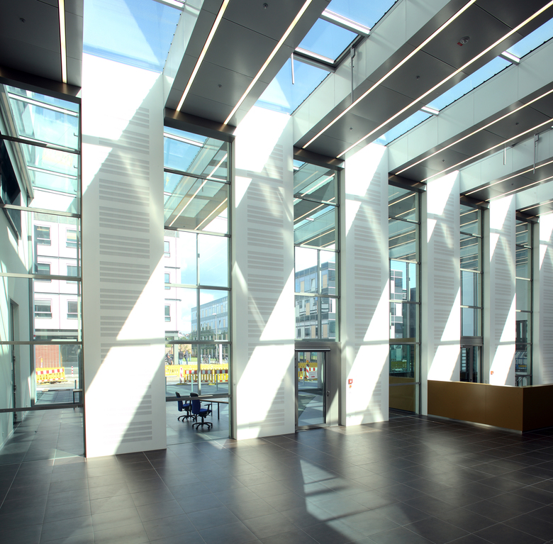 Der Aspekt der Nachhaltigkeit wurde unter ökologischen, ökonomischen und sozialen Belangen Basis des Konzeptes. Dies führte zu einem flächen- und raum-sparenden Entwurf mit reduzierten Hüllflächen sowie wirtschaftlichen Erstellungs- und insbesondere Betriebskosten. Teil des energetischen Konzeptes sind u.a. der Einsatz von Geothermie, Bauteilaktivierung und natürlicher Lüftung. Damit werden beachtliche Einsparungen an Primärenergiebedarf erreicht, die im Verwaltungstrakt bei 28% und beim Laborgebäude sogar bei 39% unter der Energiesparverordnung liegen.