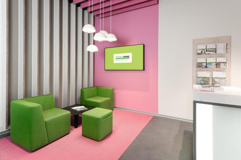 Umsetzung Konzept für drei prototypische Bankfilialen der Migros Bank AG.