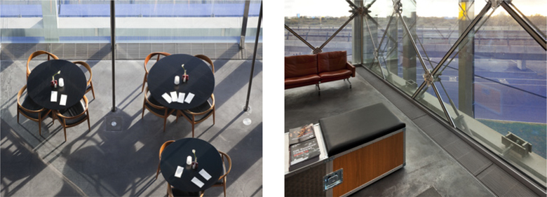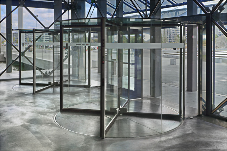 - for the transitions inside/outside at swing, wing and double sliding doors partly curved, partly straight linear gratings made of brushed stainless steel with 5 mm bar distance; walkable with stiletto heels; loadable with 4 KN on 100 x 100 mm