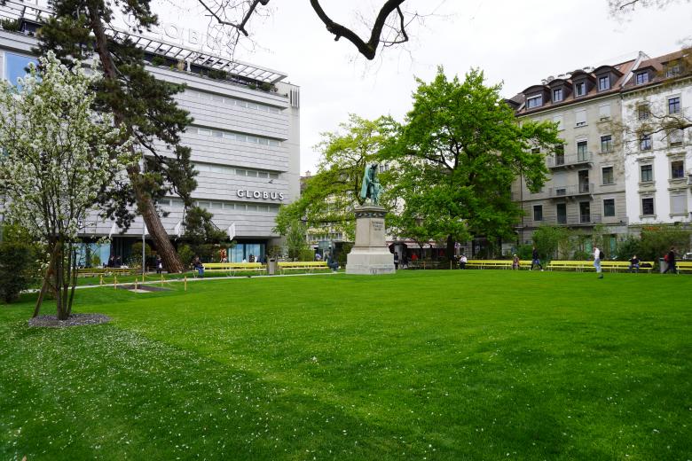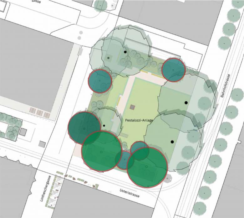Das grosszügige Baumdach, welches den Freiraum bis heute prägt, bleibt
