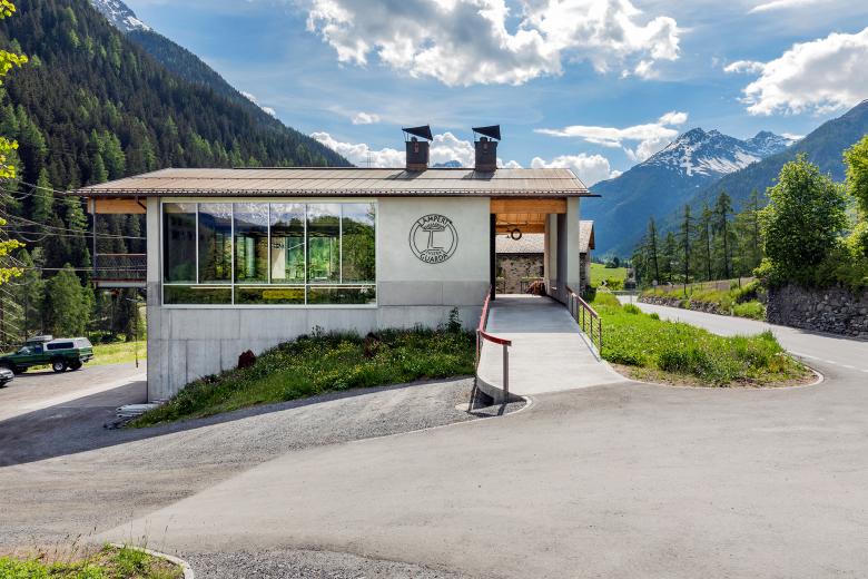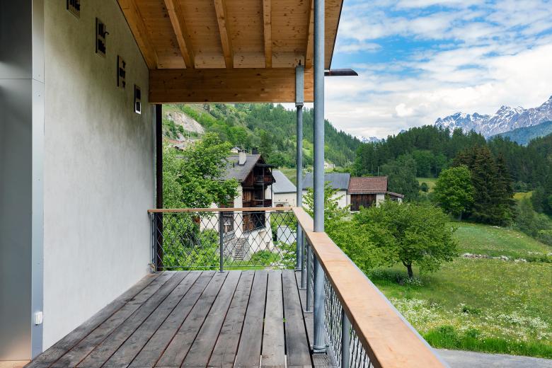 Nach Jahrzehnten der erste Neubau in dem durch die Kantonsstrasse durchschnittenen Weiler Giarsun. Durch den Neubau in der offenen Lücke wird das kleine Dorf in sich geschlossener und in seiner Siedlungsstruktur gestärkt. Seine vielfältige Nutzung belebt den Ort und nimmt durch seine Formensprache und Proportion sowie den öffentlich zugänglichen Räumen Kontakt zu den historischen Nachbarhäusern und der Umgebung auf. Der Ausstellungs- und Mehrzweckraum mit Küche und öffentlicher Mittags - Cantina wird zum einladenden Treffpunkt für Interessierte und Handwerker. Ein offenes und in der Konstruktion ehrlich gebautes Handwerkerhaus.