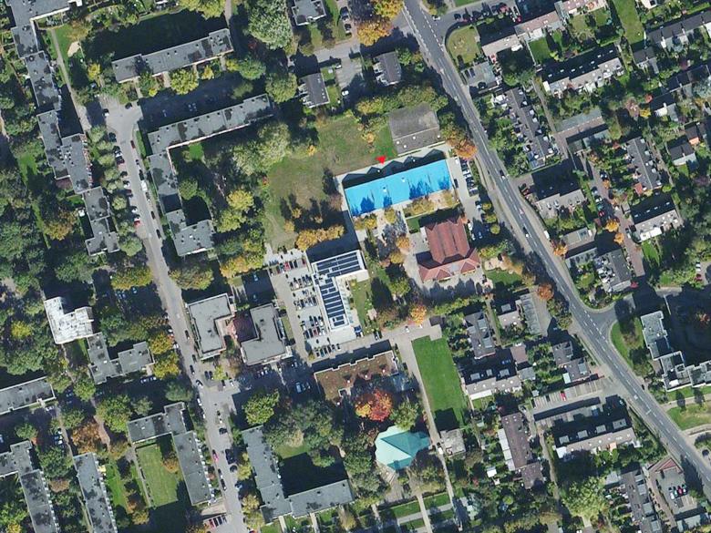 Das Grundstück liegt wie ein schmales Handtuch zwischen der mehrgeschossigen Wohnbebauung und einer sanierungsbedürftigen Turnhalle. Vier Gruppenhäuser und ein Gemeinschaftshaus bilden einen lang gestreckten markanten Baukörper.
