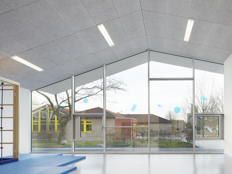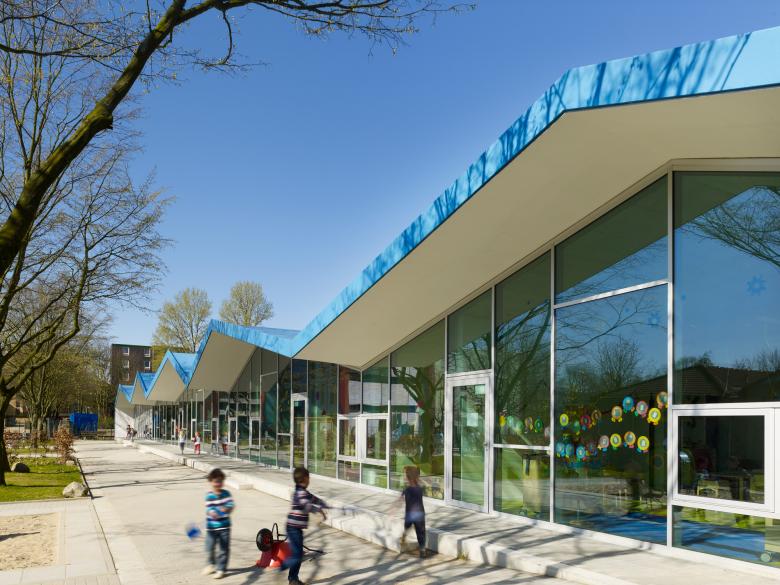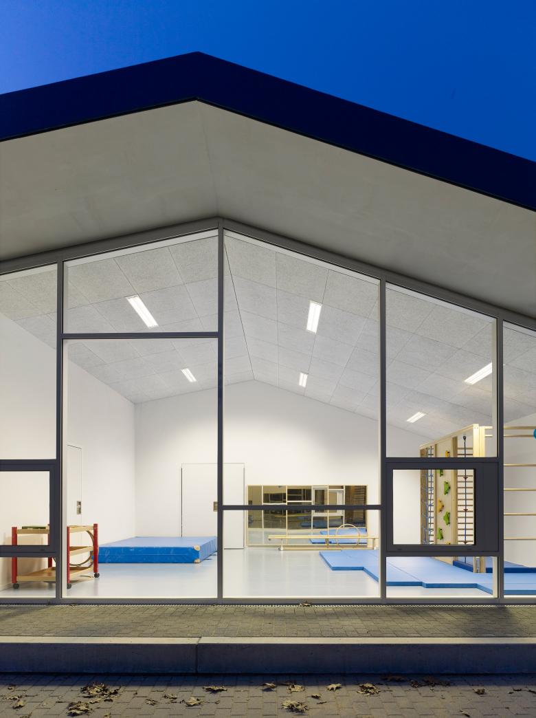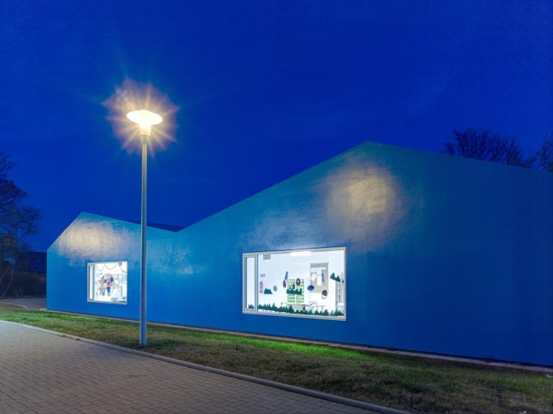Das Berliner Viertel in Monheim befindet sich im Umbruch. Mit einem Bündel von sozialen und baulichen Maßnahmen will die Stadt Monheim dem einstigen Vorzeigeprojekt nordrheinwestfälischer Großsiedlungsbauten neue Impulse verleihen. Der Neubau der Blauen Kita markiert einen solchen Ort des Wandels im Grau der Peripherie. Durch einen aufs wesentliche reduzierten Entwurf konnte statt der ursprünglich geplanten Container ein sehr kostengünstiges, aber dennoch attraktives