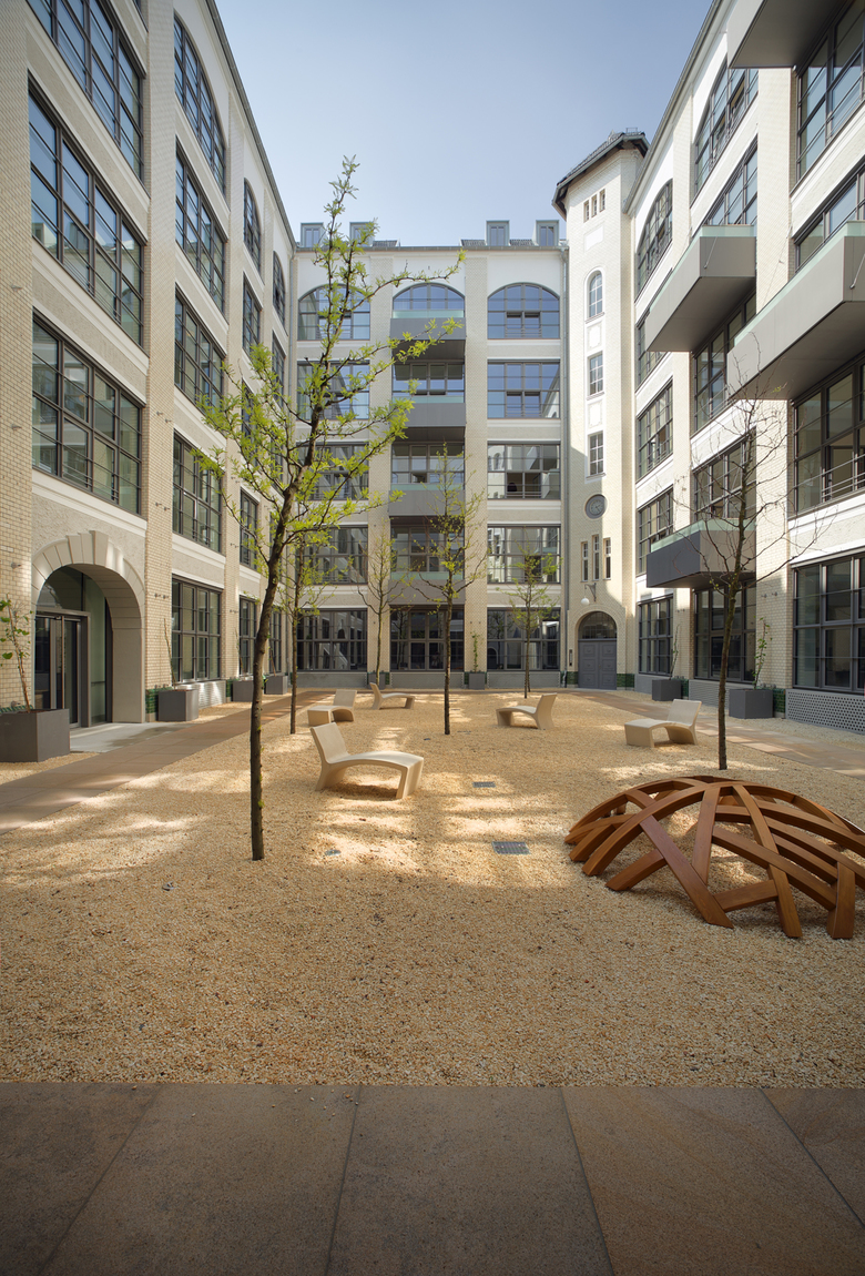 Die maroden Keller der Innenhöfe wurden entfernt und eine Tiefgarage mit 31 PKW-Stellplätzen eingebaut. Die Innenhöfe wurden aufwendig gestaltet und begrünt.