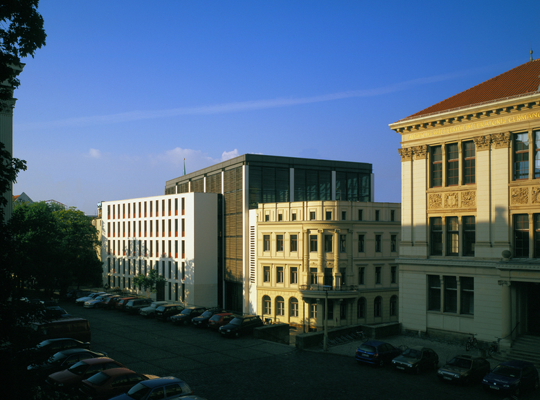 Das Juridicum schließt die westliche Seite des Universitäts-Campus der Martin-Luther-Universität und vermittelt sensibel zur mittelalterlichen Stadtstruktur. Das Raumprogramm beinhaltet eine juristische Präsenz-Bibliothek, deren Raumwirkung durch die treppenartigen Leseterrassen charakterisiert wird, die den Bereichen mit Bücherregalen vorgelagert sind.
