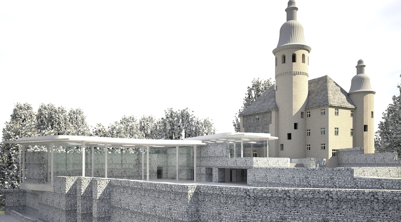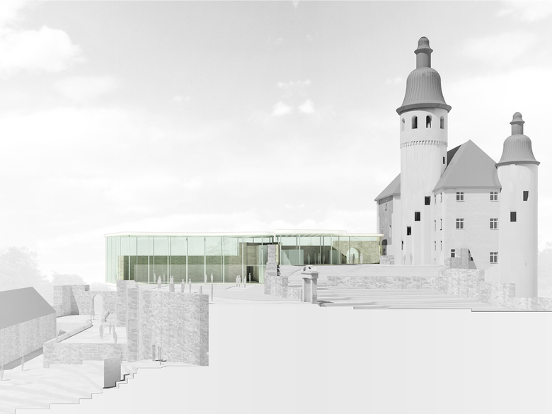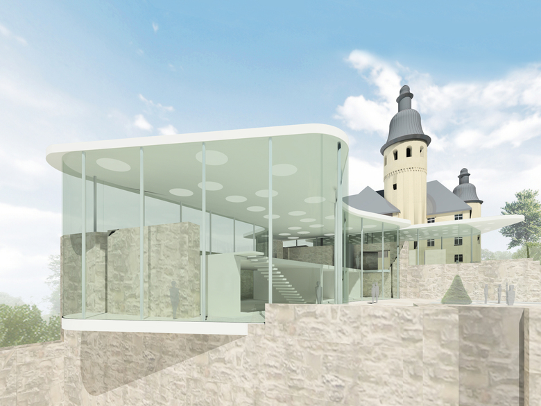 Der oberbergische Kreis beabsichtigt durch Neubauten das seit Jahren bestehende Raumdefizit des Museums Schloss Homburg zu beseitigen und die Präsentation innerhalb der Gesamtanlage zu verbessern. Zu der eher zufällig entstandenen Bestandssituation des Schloss Homburg mit seinen zerklüfteten Mauerresten sowie den daran angelehnten historischen Häusern gesellt sich ein Ensemble aus ZWEI PAVILLONS mit eigenständiger Architektursprache, die die Zuordnung der Neubauten am Beginn des digitalen Zeitalters historisch präzise einordnet.