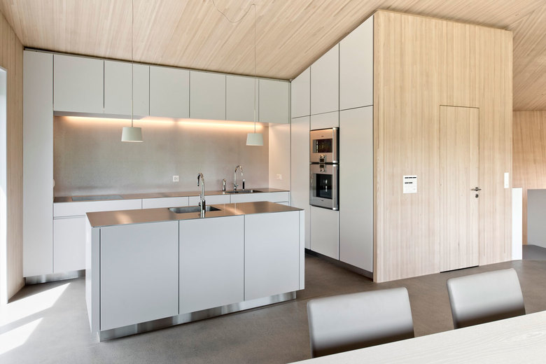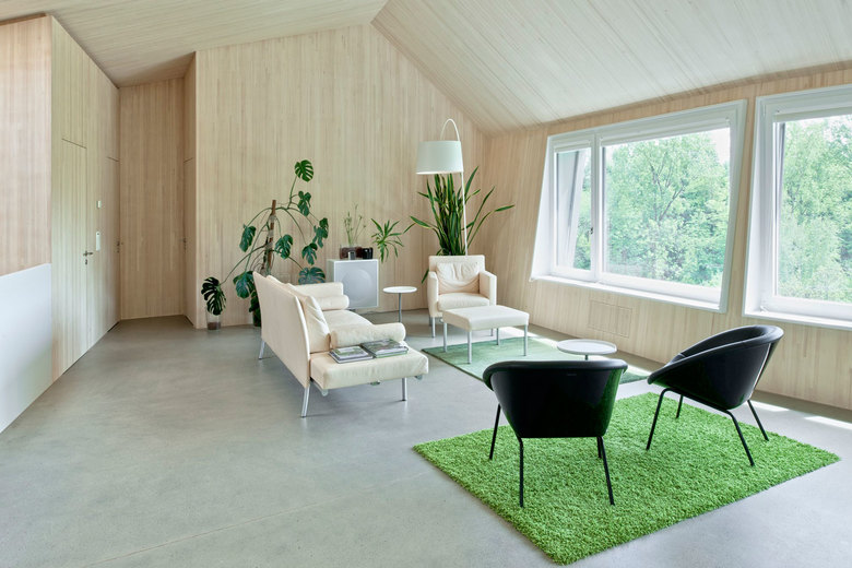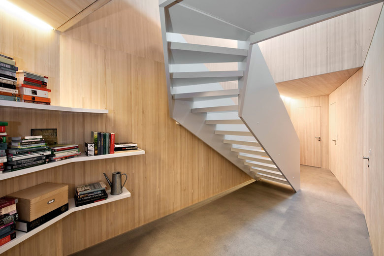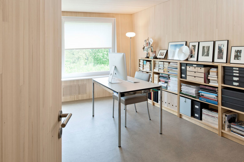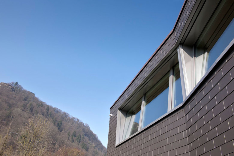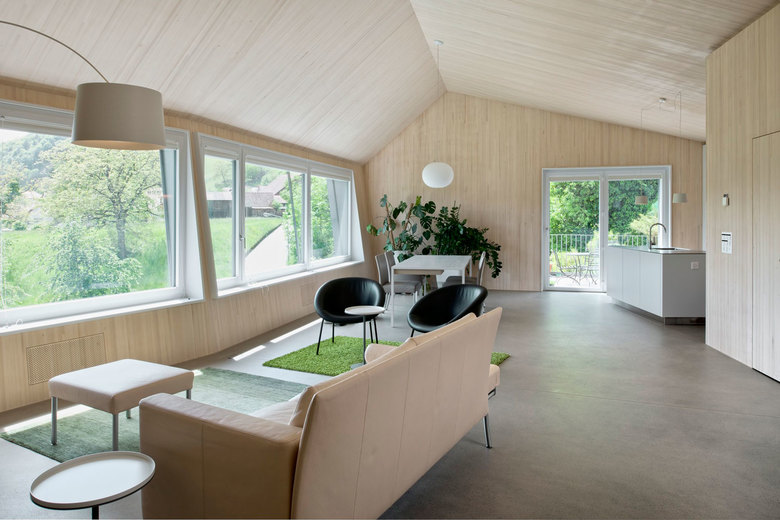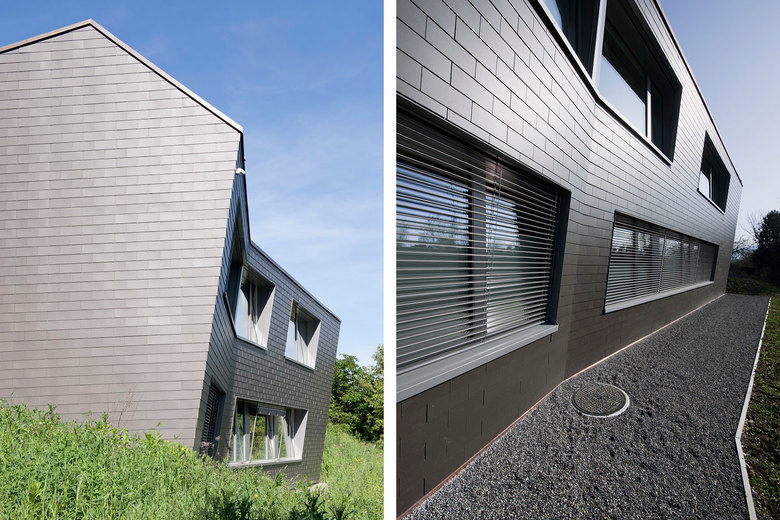 In Villigen ist ein aussergewöhnliches MINERGIE-P – Einfamilienhaus entstanden. Dieses in Holzelement-Bauweise erstellte Haus sticht insbesondere durch seine spezielle Volumetrie sowie durch die konsequente Materialisierung (Aussenwände mit Eternitschindel-Verkleidung, innen sichtbar bleibende Blockholz-Platten an Wänden und Decken) ins Auge.