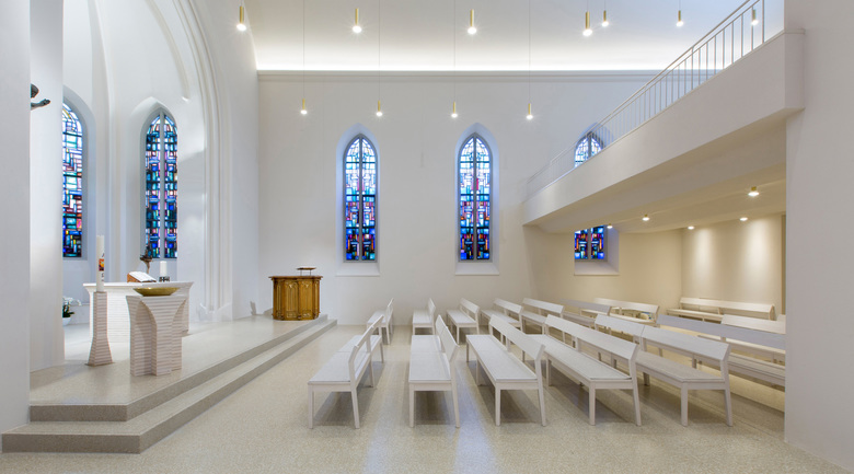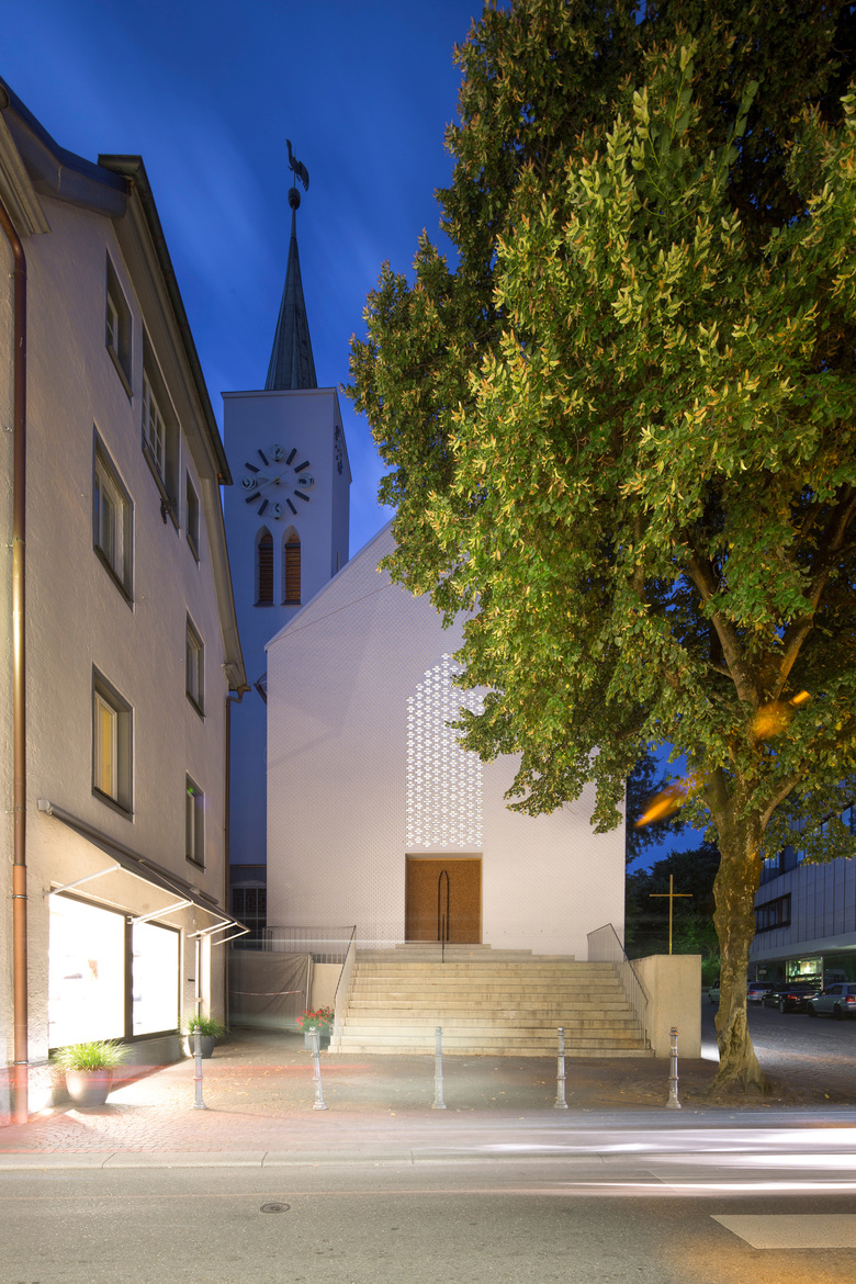 Die ursprünglich als einschiffige, im neogotischen Stil erbaute Auferstehungskirche befindet sich in zentraler, innenstädtischer Lage Überlingens. Zahlreiche An- und Umbauten haben sie im Laufe der Jahre immer wieder verändert. Insbesondere das im Jahr 1903 erbaute Seitenschiff führte zu einer erheblichen Störung der Ausrichtung des Hauptschiffs. Das Hauptschiff wurde durch eine Erweiterung in Längsrichtung, ein neues Portal und einen Vorraum gestärkt. Gleichzeitig werden die Themen verbesserte Sicht von den Emporen, rollstuhlgerechte Erschließung und Toilette gelöst. Das auf Grund seiner Lage für die visuelle Teilnahme am Gottesdienst ungeeignete Seitenschiff wurde zum „Klangraum“ umgewidmet. Die dortige Empore rückgebaut, um an der Stirnseite ebenerdig den nötigen Raum für die Orgel zu schaffen. Der Bereich vor der Orgel ist flexibel bestuhlt, so dass der Chor bei Proben, Konzerten und Gottesdiensten variabel positioniert werden kann. Durch die Konzentration des Gottesdienstes auf das Hauptschiff entsteht ein Gegenüber von Gemeinde und Altarraum mit einer klaren Ausrichtung, welche durch den Klangraum des Seitenschiffs flankiert wird. Das bestehende Hauptschiff wurde Richtung Süden in gleichem Volumen und gleicher Materialität erweitert. Das neue Portal spannt sich zwischen der äußeren Silhouette der Kirche und dem inneren gotischen Bogen auf. Die so entstehende Giebelwand ist nobiliert und leitet nach dem Vorbild eines klassischen Kirchenportals nach innen. Das einprägsame Portal setzt einen deutlichen städtebaulichen Akzent. Es hebt die Auferstehungskirche als Teil des Lebens in Überlingen hervor und integriert sie stärker in das religiöse und kulturelle Bild der Stadt. Der Vorraum soll Gottesdienstbesucher und Gäste einladen und Gelegenheit für eine erste Begegnung zwischen Menschen mit und ohne Gehbehinderung bieten. In die Wand eingelassene Regalfächer bieten Raum für die Gesangsbücher und sonstige Gemeindeinformationen.