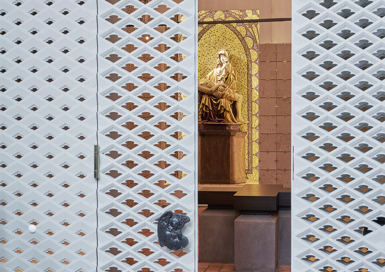 Die Aufgabe im vorgeschalteten Wettbewerb bestand darin das Kolumbarium im linken Seitenschiff der doppelschiffigen Basilika zu situieren. Beim Betreten der Kirche bauen die beiden Langhäuser eine ungewöhnliche Dynamik und Spannung auf, die insbesondere durch die großen Altäre einen Höhepunkt findet. Das Gefüge des Raumes ist architektonisch einzigartig und konnte schlichtweg nicht verändert werden, weil jeder Eingriff den Gesamteindruck gefährdet. Keine der denkbaren Lösungen für ein Kolumbarium im Seitenschiff lies erwarten, dass sie dem würdigen Trauern und einem verantwortungsbewussten Umgang mit einem Heiligtum wie der Karmeliterkirche ausreichend gerecht werden kann.