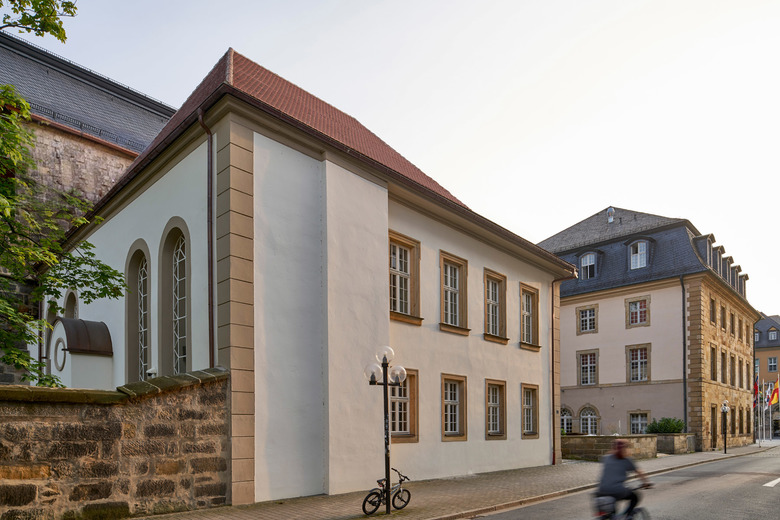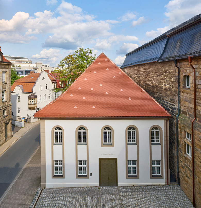 Die erstaunlich wechselvolle Historie des heutigen Synagogenbaus reicht weit in das 18. Jahrhundert zurück und ist eng mit der Bayreuther Stadtgeschichte verwoben. 1714 errichtete Markgraf Georg Wilhelm mit dem „Redouten- und Operahaus“ den Vorgängerbau des heutigen Markgräflichen Opernhauses, welches wiederum in seiner jetzigen Form in der Mitte des 18. Jahrhunderts direkt neben der heutigen Synagoge errichtet wurde. In das barocke Redoutenhaus zog nach mehreren Umbauten 1759 schließlich die jüdische Gemeinde ein und nutzt das Gebäude seitdem bis heute als Synagoge. In den Novemberpogromen wurde diese Institution jäh unterbrochen und durch die Nationalsozialisten verwüstet. Der vollständigen Vernichtung durch Feuer entging sie durch die direkte Nachbarschaft zum Opernhaus. In der Umkehrung wird vermutet, dass die Synagoge am Ende des Krieges wiederum das Markgräfliche Opernhaus, heute Weltkulturerbe der UNESCO, vor der Zerstörung durch die Alliierten bewahrt hat. Der weitestgehend unversehrte Baukörper wurde nach dem Krieg zunächst notdürftig hergerichtet. So konnte er einerseits bereits 1946 der jüdischen Gemeinde wieder Heimstätte sein, andererseits blieb aber auch ein herausragendes Baudenkmal erhalten, in dem die Geschichte Bayreuths bis heute ablesbar ist.