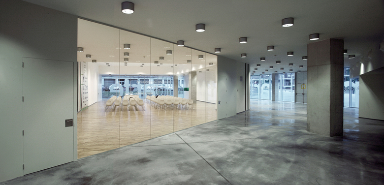 3. The platform space. The ground floor of the complex was conceived as a highly permeable, transparent public level that regulates the various entrances to the building and grants autonomy of use to the spaces at various times of day.