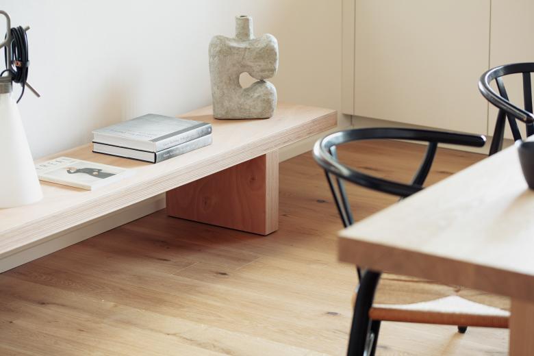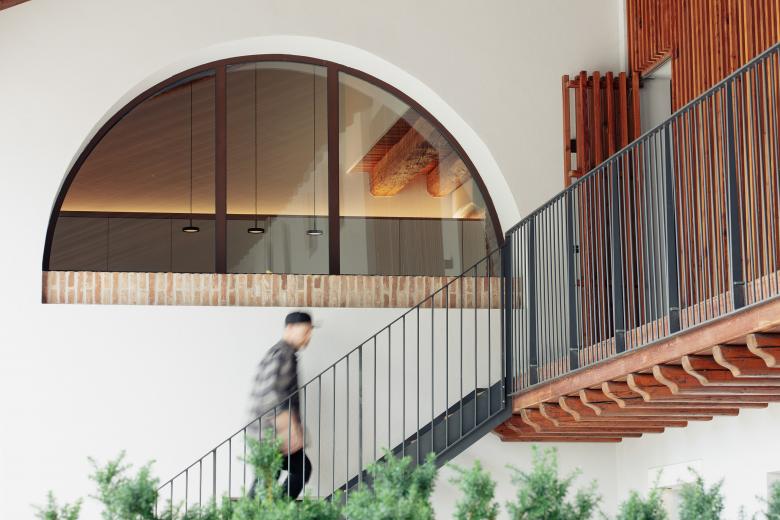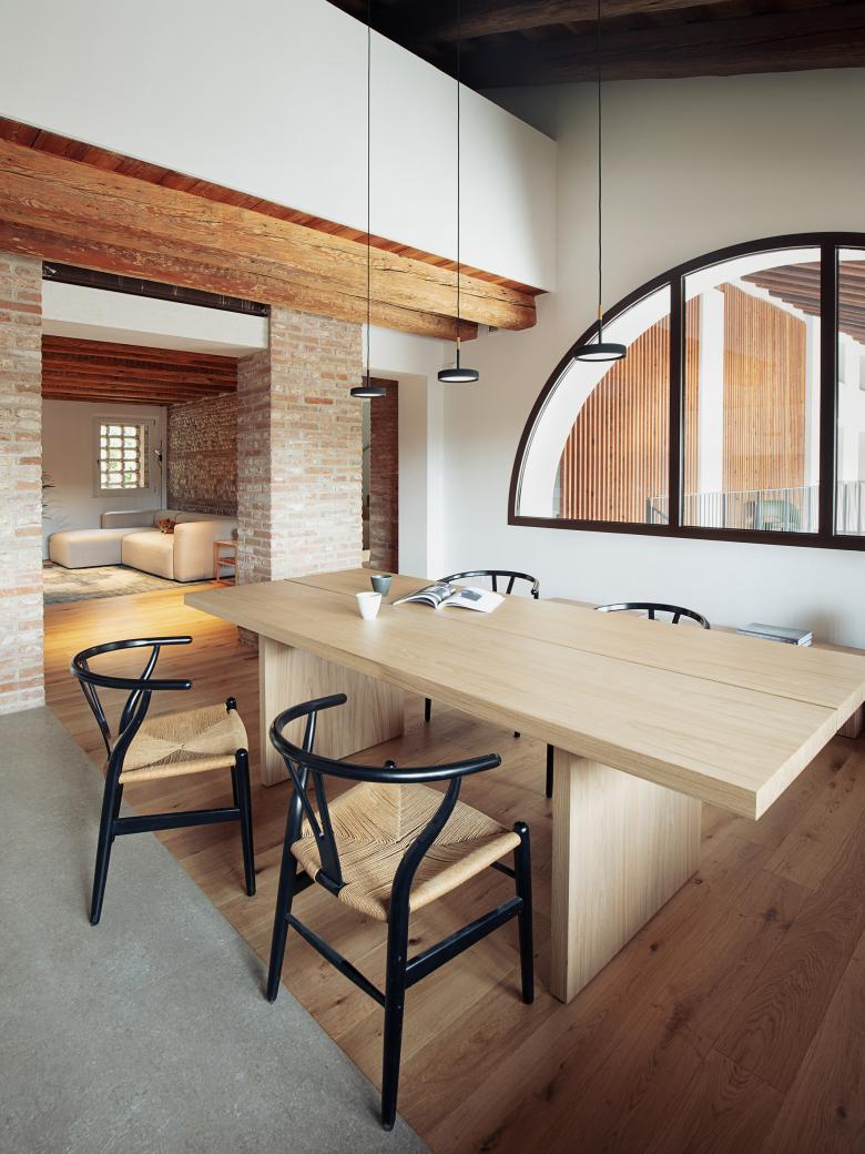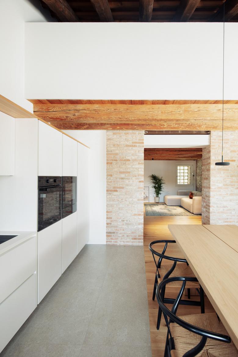 Gli spazi interni hanno un sapore di contemporaneità che valorizza le preesistenze attraverso il contrasto tra le superfici nuove e quelle ruvide, quasi grezze, esistenti. Anche l’illuminazione artificiale lavora in questa direzione, alternando fonti luminose nascoste a corpi illuminanti dal design semplice, in linea con il concept minimale che guida l’intero progetto.