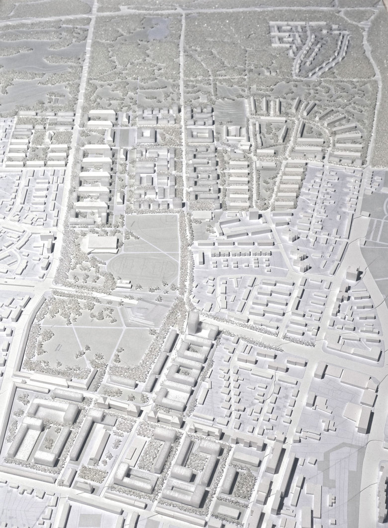 Die Kaserne durchtrennt derzeit essentielle Nord-Süd-Verbindungen, z.B. von der Gartenstadt in den Volkspark. Diese gilt es wiederherzustellen, um ein feinmaschiges Netz für Verbindungen in alle Richtungen entstehen zu lassen. Zentrum der Nord-Süd-Spange wird das Memorialfield, Bindeglied auf der Ost-West-Achse und unmittelbar an das neue Kreativzentrum anschließend.