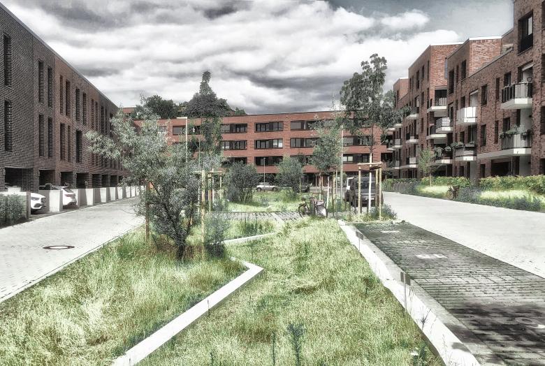 Insgesamt wurden hier ca. 750 Wohnungen in unterschiedlichen Wohnformen, von Stadthauseinheiten, über Geschosswohnungen als Eigentums- oder Mietwohnungen, bis zu geförderten Wohnungen in unterschiedlichen Größen realisiert.