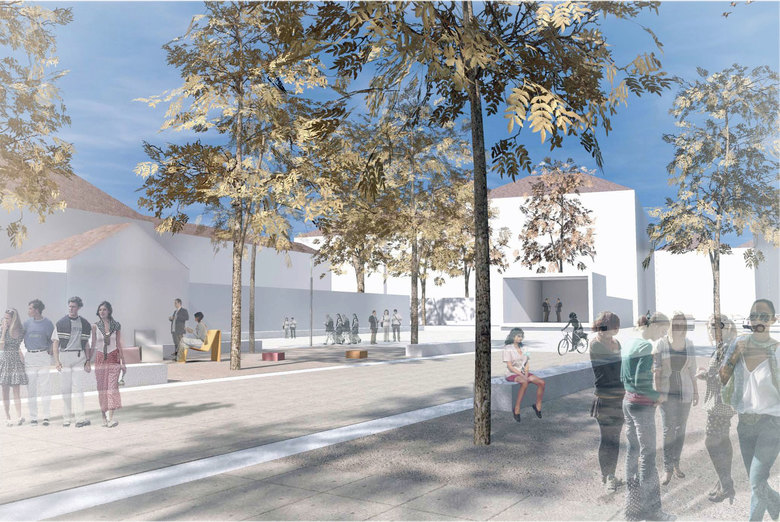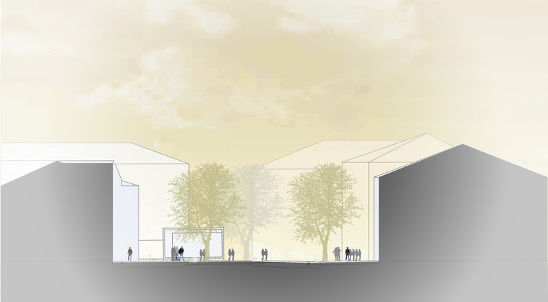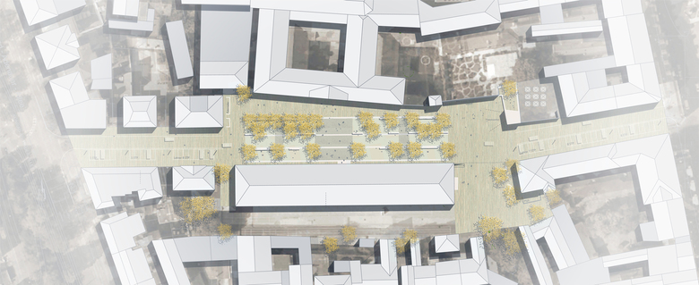 Das Holbeingymnasium, als dominierendes Gebäude der Hallstrasse benötigt einen klar ablesbaren Platz als gut nutzbaren Mittelpunkt des schulischen Lebens. Zugleich kann durch die Bipolarität des Raumes als Schulhof und öffentlicher Platz ein interessantes und ungewöhnliches Experiment der Nutzungsüberlagerung entstehen. Damit dies gelingen kann muss der Durchgangsverkehr weitestgehend aus der Hallstrasse herausgehalten werden. Dies soll durch die Umwidmung in eine reine Anliegerstraße geschehen.