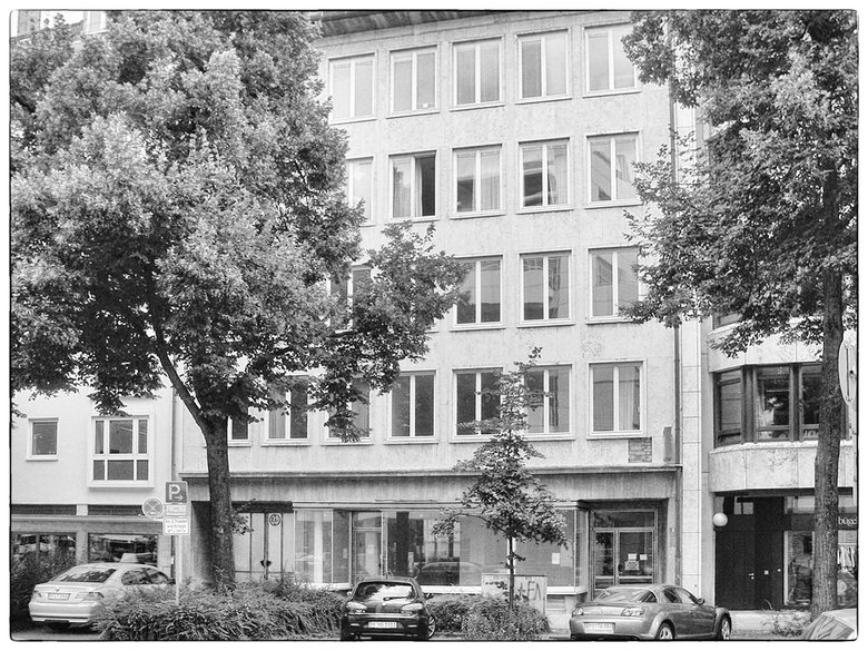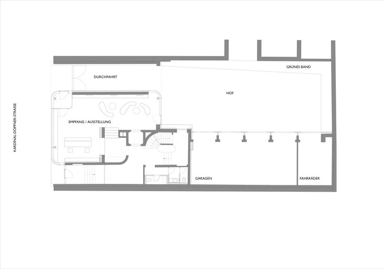 Der Friseurladen im Erdgeschoss wich einem repräsentativen Foyer- und Ausstellungsraum, der sich zum Hof hin öffnet und nun Ein- und Durchblicke erlaubt. Die restlichen Geschosse wurden in Büroflächen umgewandelt. In den Geschossebenen wurden die Liftvorzonen in die Büroeinheiten integriert. So entstand ein großzügiger Entree- und Wartebereich an der Nahtstelle vom Hauptgebäude zum Hofflügel.