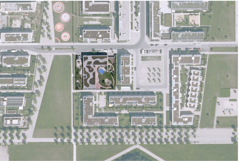 Die KITA KOOP RIEM liegt im 2.ten östlichen Abschnitt des neuen Stadtteils auf dem Gelände des ehemaligen Flughafens.