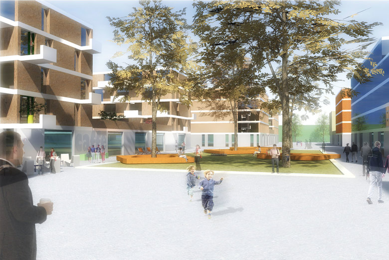 Vier Identität stiftende Orte mit besonderem Programm bilden die Ankerpunkte eines urbanen Freiraumsystems aus Plätzen, Gassen Höfen und Parks. Diese vier Ankerpunkte beziehen sich auf Situationen im Bestand und bilden programmatisch unterschiedliche Platzflächen mit starkem Charakter aus.