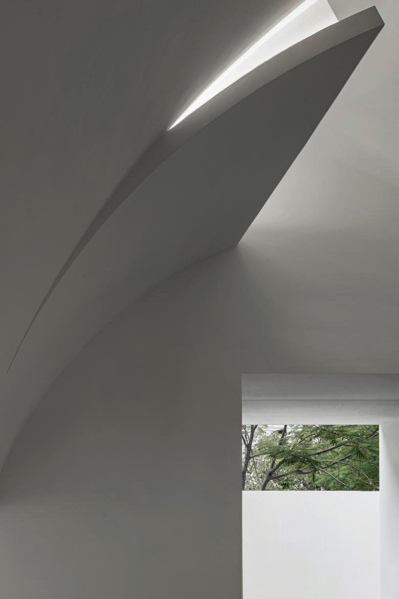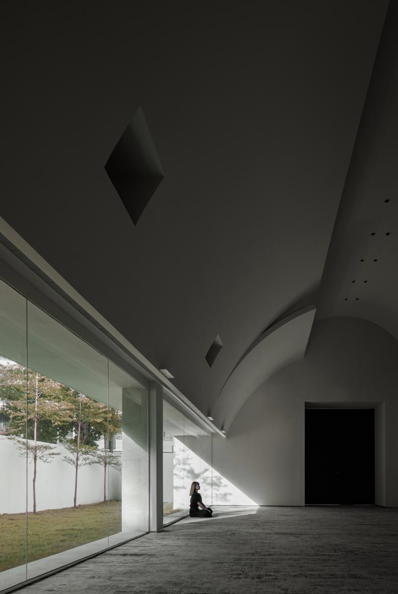 The free changes of light and shadows enrich the form of the space throughout the day, resulting a varying aesthetic and a more intriguing space. The free light and shadow effects are preset through design strategies.