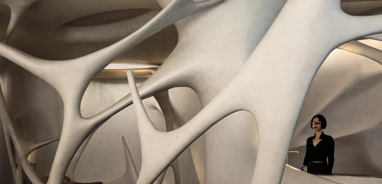 By amplifying existing forms, AD ARCHITECTURE created a complicated spatial realm full of visual variations. This is the first time the team has presented a space in such a radical way.