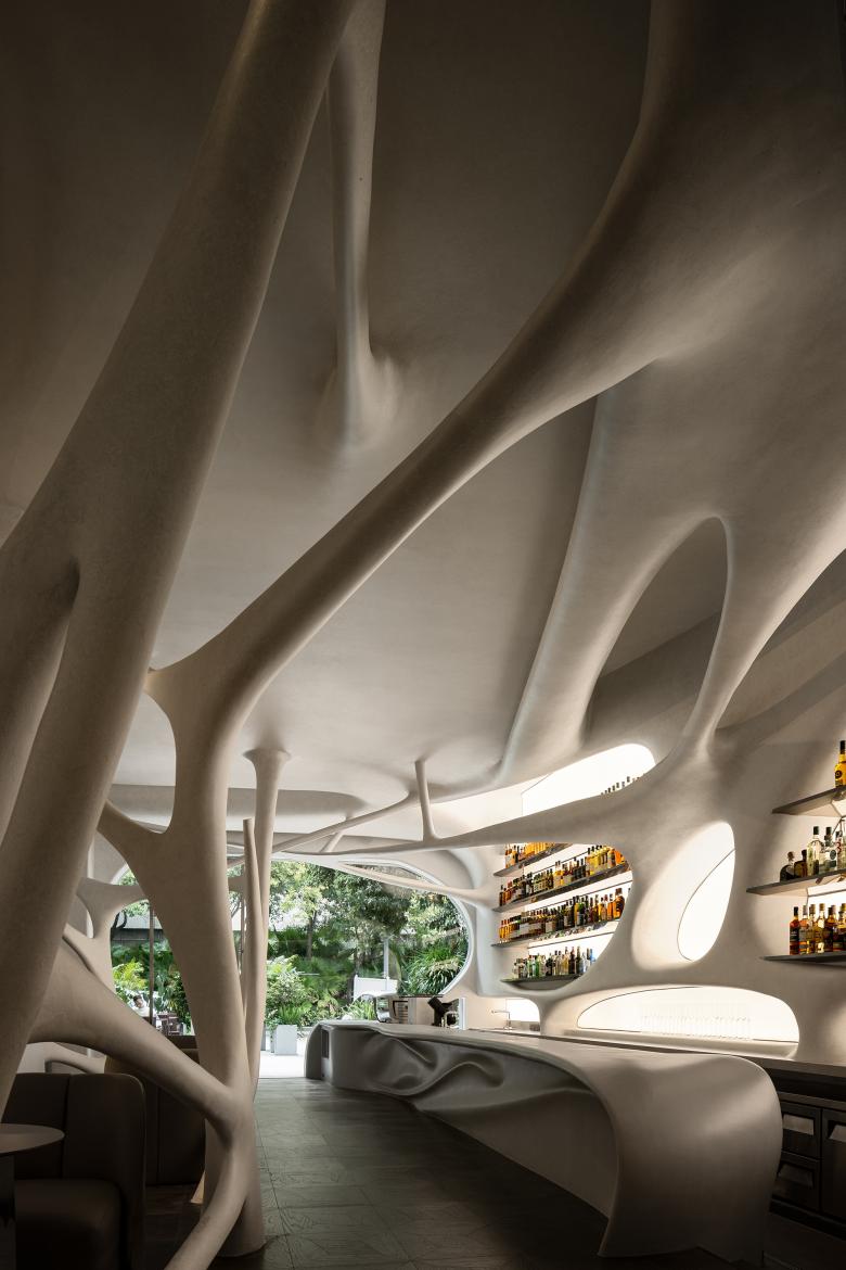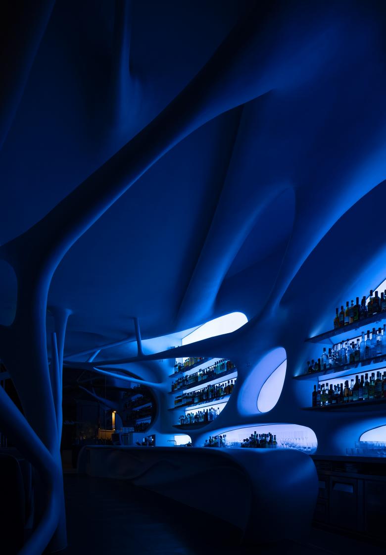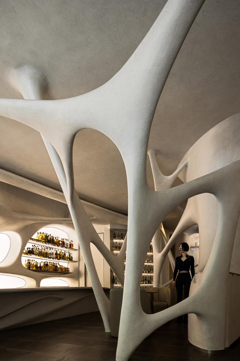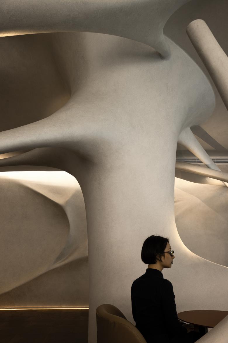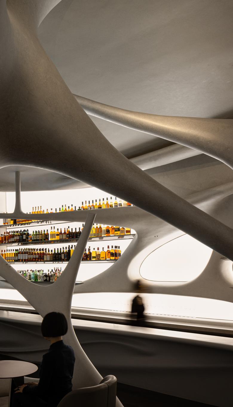The entire space is internally free and can function in different scenarios. The sense of fluidity of the space creates a dialogue with people and forms a dynamic scene. The form of the space is full of imagination: it can be a cave, a space capsule, or a neuron... It can flexibly switch between the leisure of a cafe during the day and the excitement of a whiskey bar at night.