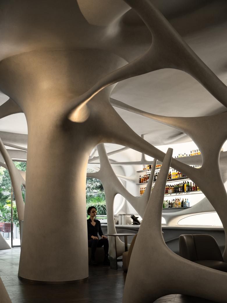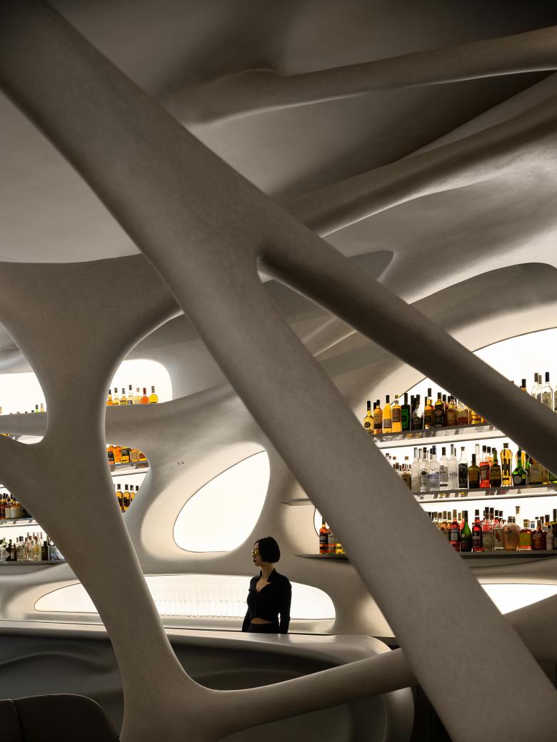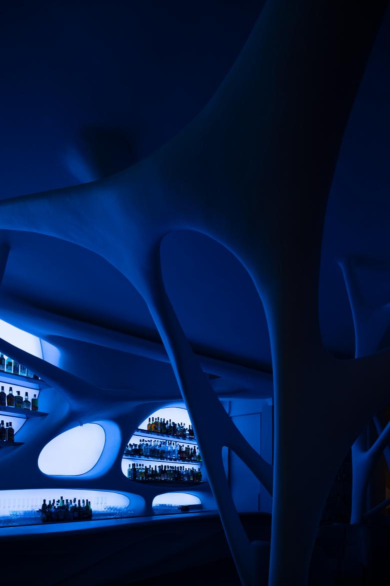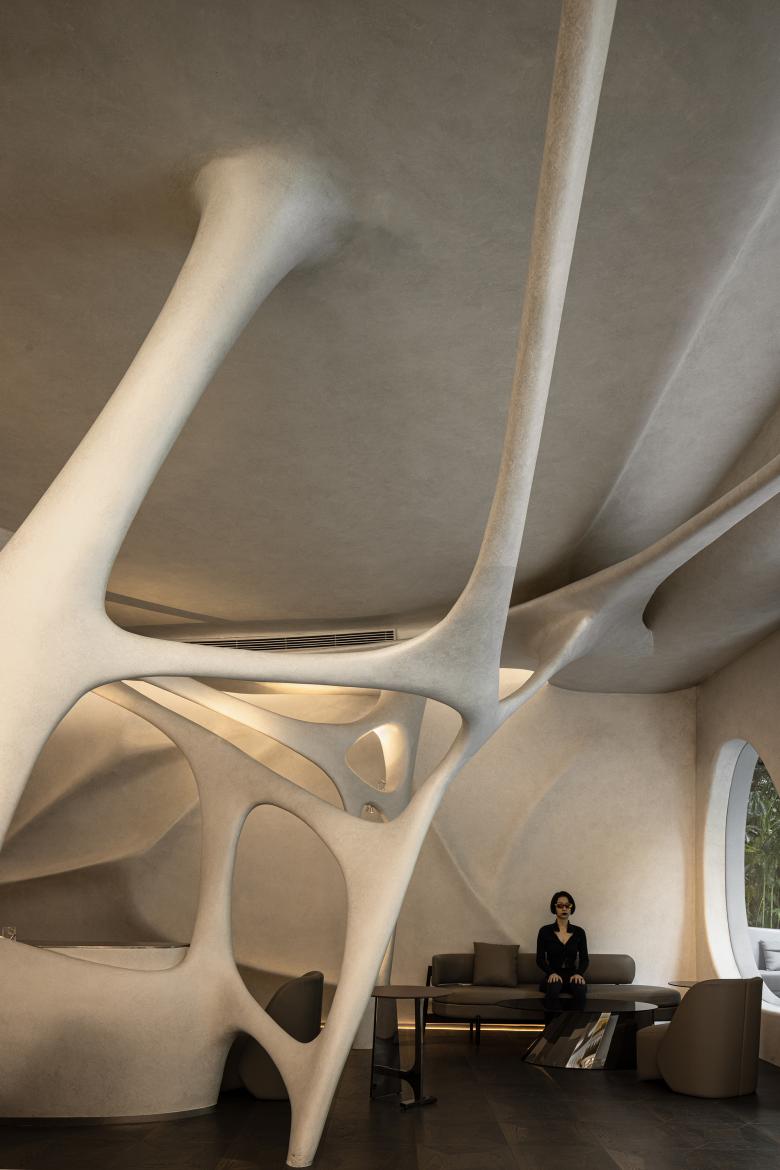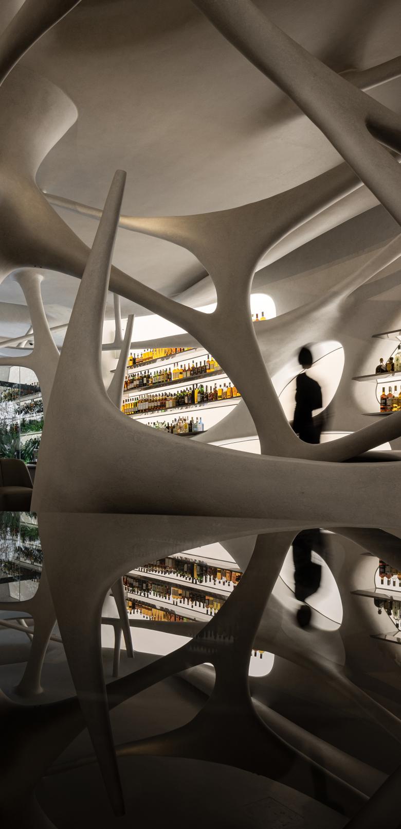 The entire space is internally free and can function in different scenarios. The sense of fluidity of the space creates a dialogue with people and forms a dynamic scene. The form of the space is full of imagination: it can be a cave, a space capsule, or a neuron... It can flexibly switch between the leisure of a cafe during the day and the excitement of a whiskey bar at night.