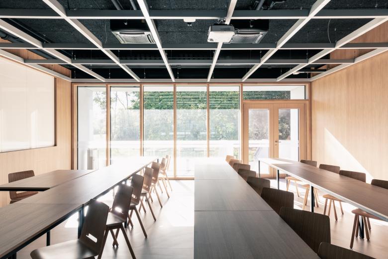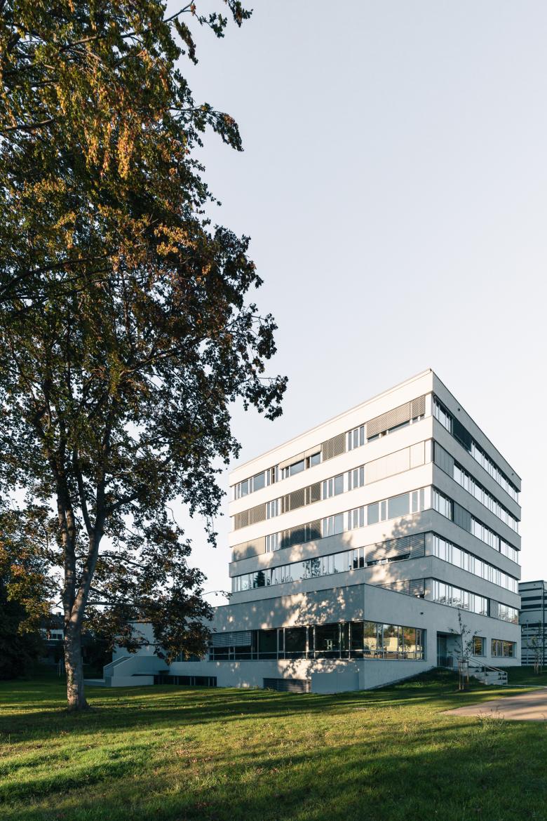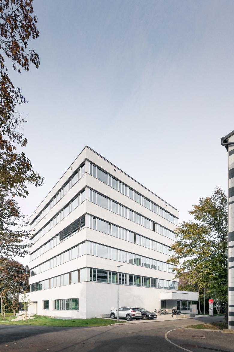 Der Neubau des EBS Centers auf dem Areal der Inffeldgründe der Technischen Universität Graz markiert eine Art Anfangs- und Endpunkt. Als figuratives Satzzeichen wurde der Baukörper deshalb auch zu einem Solitär ausformuliert. Die markante sechsgeschoßige Ostseite des EBS Centers bildet die urbane Front Richtung Campus. Die Abstufung mit Übergang zum Sockel schafft eine sanfte Verbindung zum angrenzenden Grünraumund zur kleinteiligen Nachbarschaft. Der Baukörper gliedert sich in Labor- und Forschungsräumlichkeiten und ein darüber situiertes Punkthaus mit Büronutzung. Sein kompakter, innenliegender Kern mit Stiegenhaus und angrenzenden Nebenräumen gewährleistet kurze Wege. Informelle Besprechungskojen bieten Rückzugsorte und werten den Erschließungsbereich zusätzlich auf. Während sich die Büroräume in den Obergeschoßen U-förmig um den Gebäudekern fügen, verstehen sich die Kommunikationstrakte als Erweiterung der innenliegenden Erschließungsbereiche und orientieren sich ebenfalls zum Grünraum hin. Mit dem EBS Center beschreitet AllesWirdGut überdies neue Wege in der Planung. Denn erstmals wurde ein Projekt von Beginn an unter Einbindung aller Fachplanerinnen und Fachplaner als Open-BIM-Projekt entwickelt. Auf diese Weise kann bereits in einer Frühphase auf einen außerordentlich detaillierten Plan zurückgegriffen werden. Punkt. Rufzeichen!