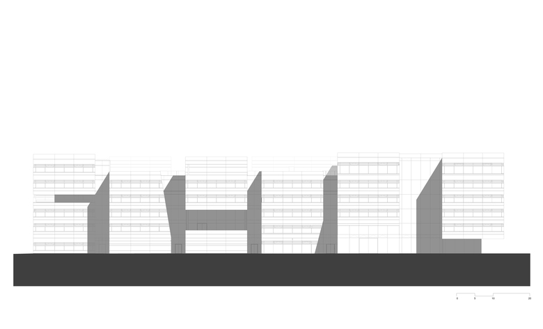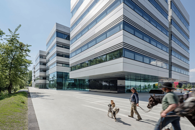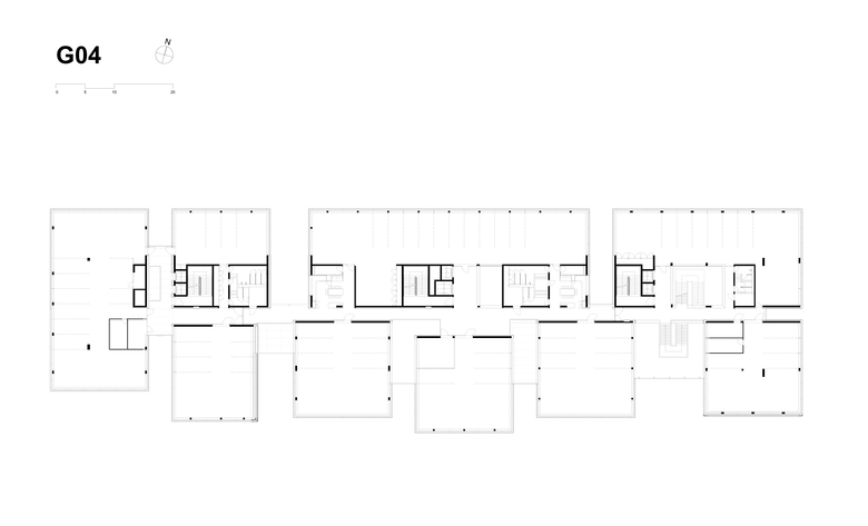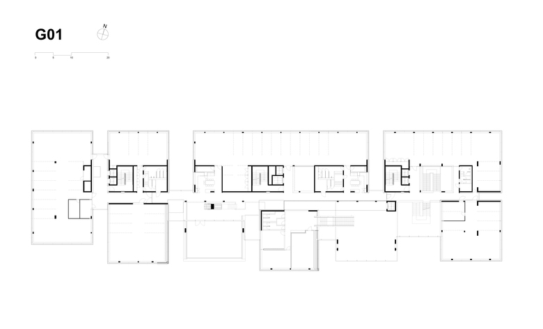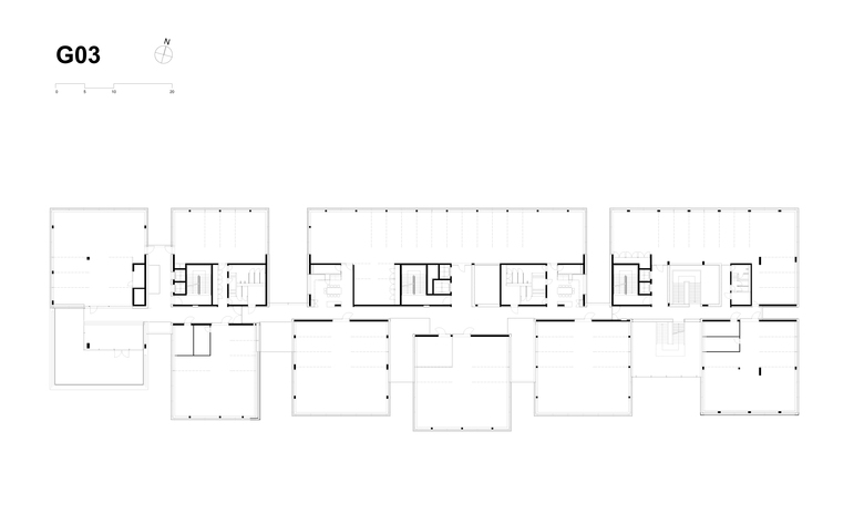 Das führende Technologieunternehmen Doppelmayr ist traditionell in Wolfurt verwurzelt und seit jeher in die dörfliche Struktur des Ortsteils Rickenbach eingebettet. Die Neuinterpretation ebenjener städtebaulichen Situation am neuen Standort stellt das Leitmotiv des Neubaus dar. Entlang eines inneren Rückgrates, an dem alle Gemeinschaftsflächen situiert sind, gruppieren sich in den Einzelhäusern unterschiedlich große Bürobereiche.