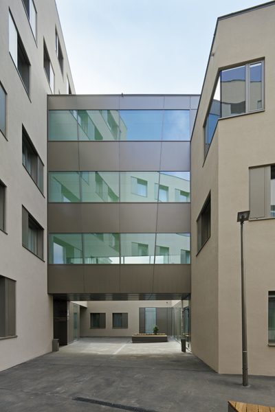 Indem es sich in die kleinteilige Parzellenstruktur des Standorts einfügt, wird es in mehrfacher Hinsicht zu einem neuen „Stadtteil“ von Krems: Gassen, Überbrückungen, Passagen, Innenhöfe, Dachgärten etc führen zu kremstypischen Motiven wie in der Altstadt, die für alle Nutzer ein vielfältiges Alltagsumfeld entstehen lassen.