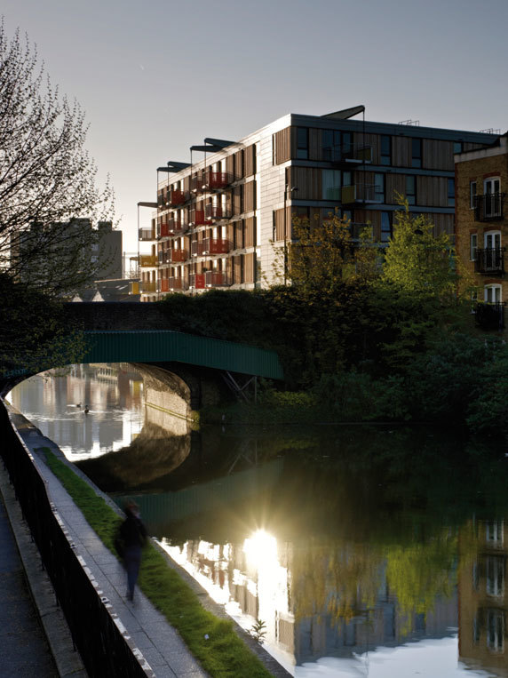 In September 2004 Allford Hall Monaghan Morris submitted designs for First Base’s London Wide Initiative bid, based on the prototype developed in the housing study above. The bid having been successful, Adelaide Wharf in Hackney was then one of three sites allocated by English Partnerships for First Base to develop. The site had an existing planning consent for 131 flats (33 of social rented flats), and 1600 m² of B1 office space. Allford Hall Monaghan Morris rationalised the proposals and a new planning application was consented by LB Hackney in December 2005.