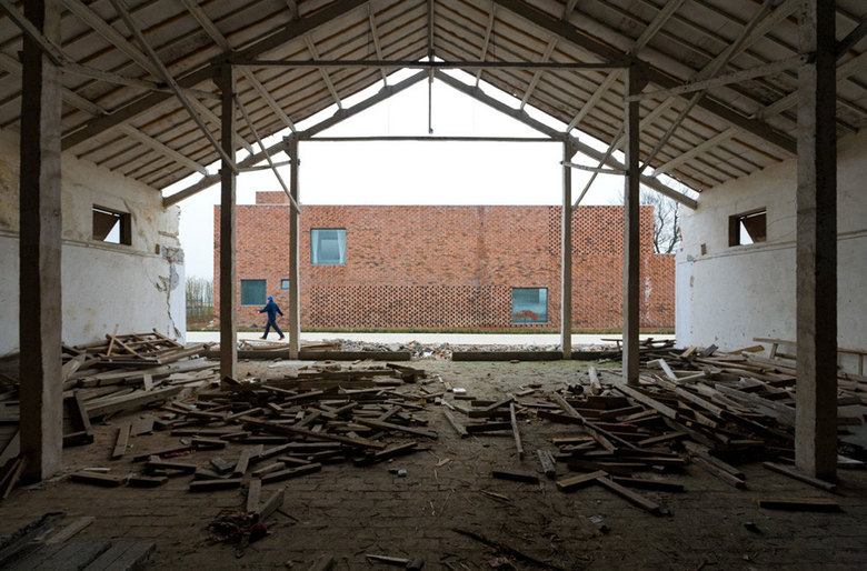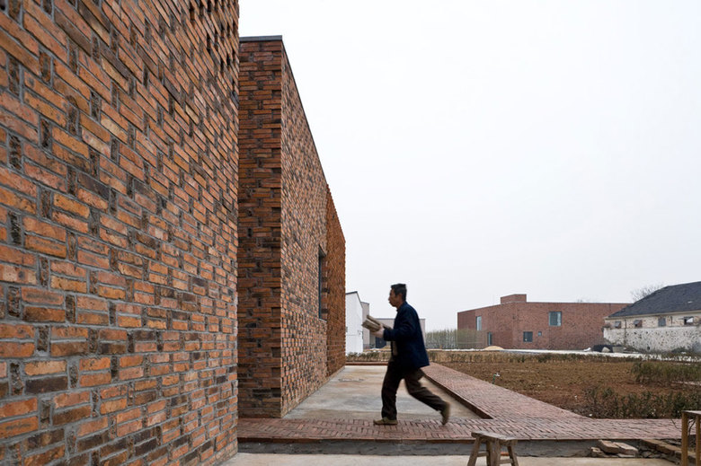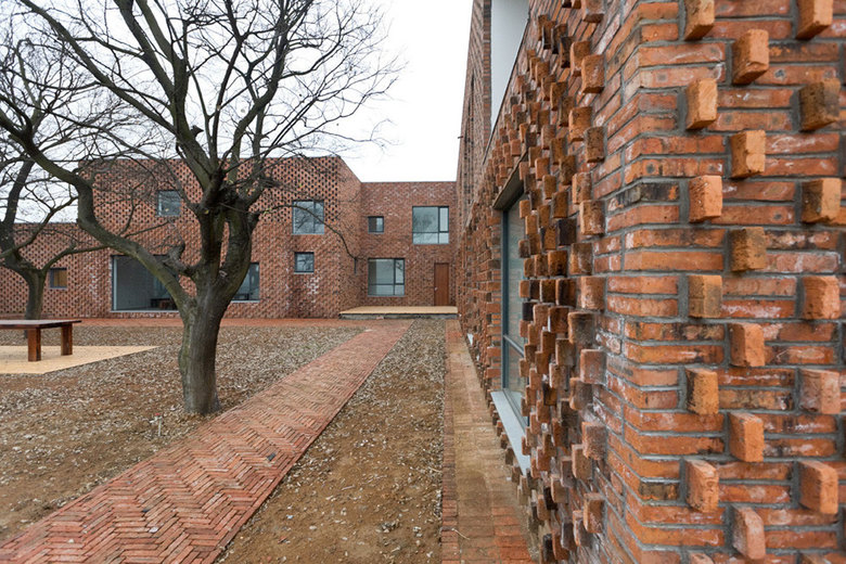 Based on local courtyard houses, the design evolved from the interaction of two brick houses with the surrounding landscape. Terracotta bricks were made from local clay with local knowledge, composing the structure and façades. Skilled village construction workers very familiar with the medium were able to facilitate the marriage of traditional savoir-faire with new and progressive design.