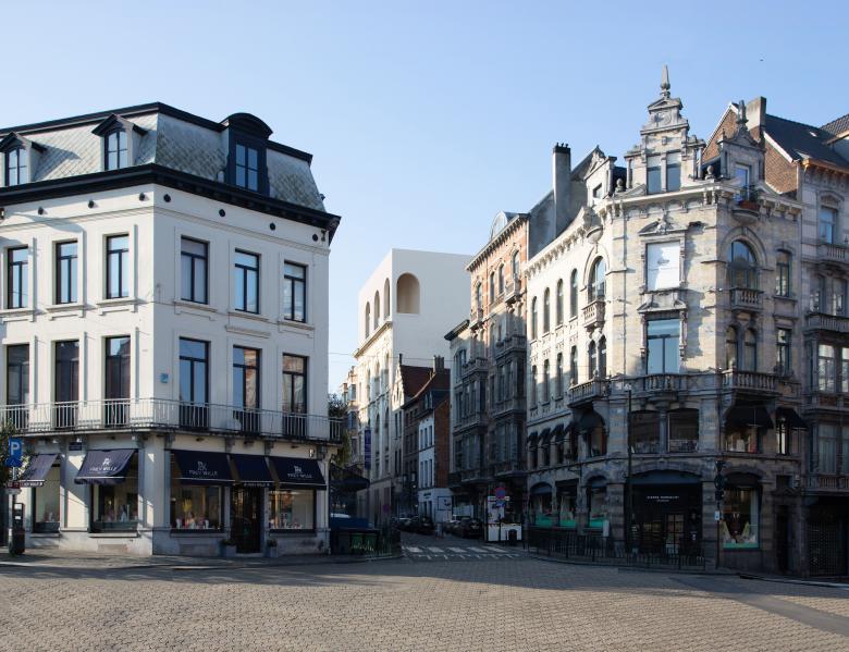 Last floor hosts a multipurpose space for 250 people, which opens to an exterior loggia that filters the relationship with the city of Brussels. The project maintains the existing façade of the building, which gets crowned with the new belvedere and offers magnificent views of the Palace of Justice and the Marolles.