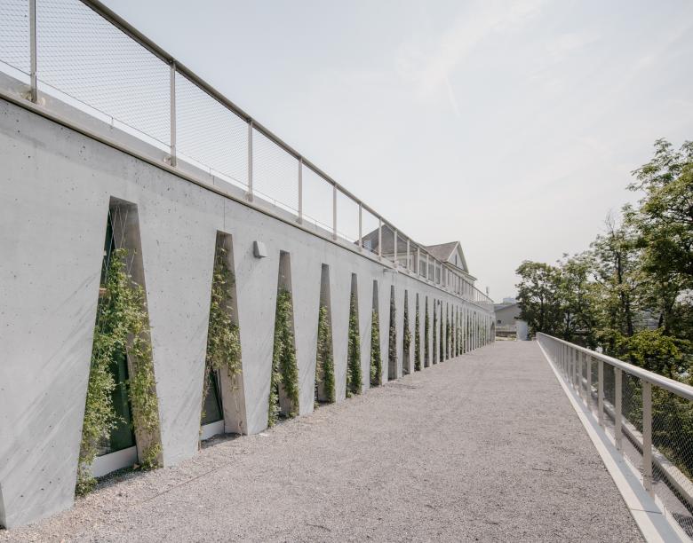 The project aimed to reactivate the promenade along the river, transforming and redefining the previous residential conditions of the location. In this way, the building is defined as a simple and tiered volume of space, integrated into the slope and barely noticeable from the outside. An element that enables a new public space to be generated on its roof and that connects the existing itineraries at different levels that intertwine along its bank.