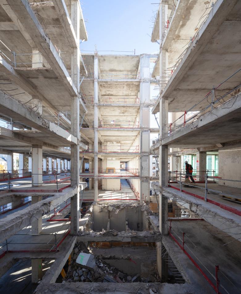 Die bestehenden Volumina werden erhalten, die Innenhöfe zum öffentlichen Garten und überdachten Platz verändert, die Galerie an der Avenue zu einer rund 100 Meter langen, transparenten Lobby umgestaltet. Wo vormals Technik die Dächer dominierte, entstehen begehbare Terrassen und Dachgärten für die Angestellten der Büros. Die Natur kehrt zu den Begegnungsorten der Arbeitenden zurück.