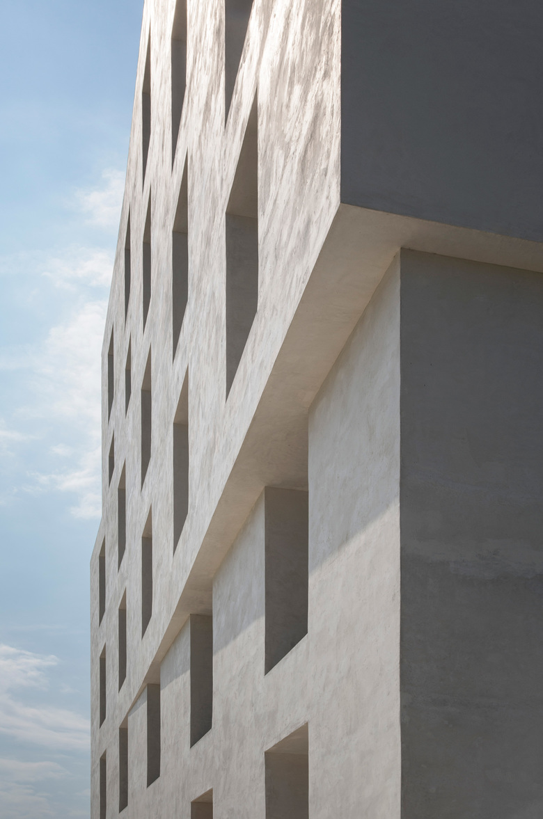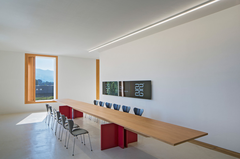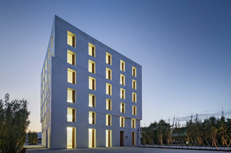 Das Gebäude kommt ohne Heizung, Lüftung und Kühlung aus, in Steuerung der Energieströme zeigt sich der menschliche Eingriff. Vor allem aber, es ist ein Haus aus Stein, mit Wänden, Türen und hohen Räumen. Es benötigt wenig graue Energie, es sorgt dank der elementaren Mittel der Architektur für ein Wohlbefinden, wie es dank der angenehmen Proportionen und dem selbsterklärenden Gebrauch entstehen kann. Die konstruktiv-energetischen Grundlagen dafür reflektieren das gesammelte Wissen von Baumschlager Eberle seit nunmehr 27 Jahren. Die Hülle verfügt über einen zweischaligen Wandaufbau aus jeweils 36 Zentimetern Ziegel, miteinander verzahnt sorgt die innere Schicht für hohe Druckfestigkeit, die äußere isoliert effizient. Tiefe Fensterlaibungen reduzieren den Wärmeeintrag, innen angeschlagene Lüftungsflügel werden über Sensoren gesteuert, um das Raumklima behaglich zu machen. Ein Beispiel: Im Winter sorgt die Abwärme für hohen Energieeintrag, die Lüftungsflügel gehen erst auf, wenn der CO2- Anteil im Raum steigt. Bei sommerlicher Hitze öffnen sich die Flügel nächtens, um mit „Zugluft“ natürlich zu kühlen. Sensoren unterstützen, vielleicht ein wenig kontrollierter, die normale Tätigkeit der Benutzer in einem Haus, das konzeptuell, ästhetisch und im Alltag sehr lange gültig sein wird. Gert Walden