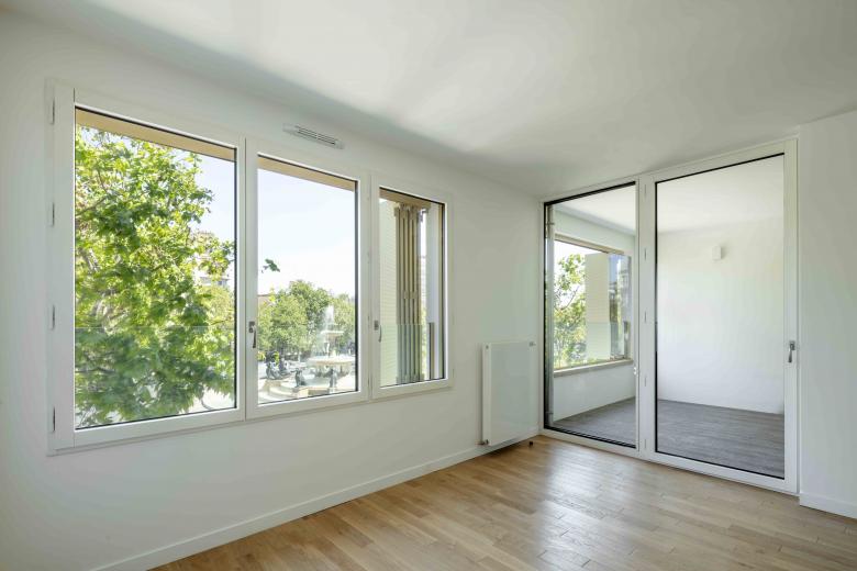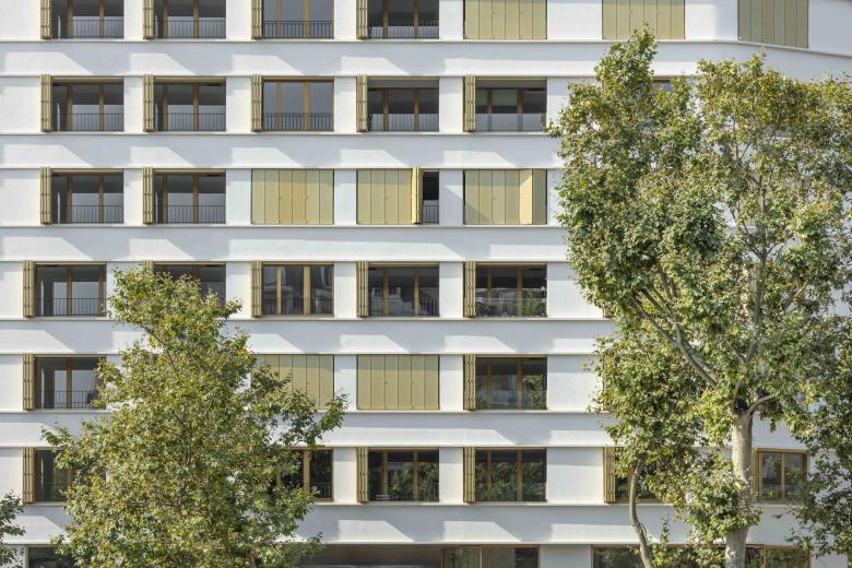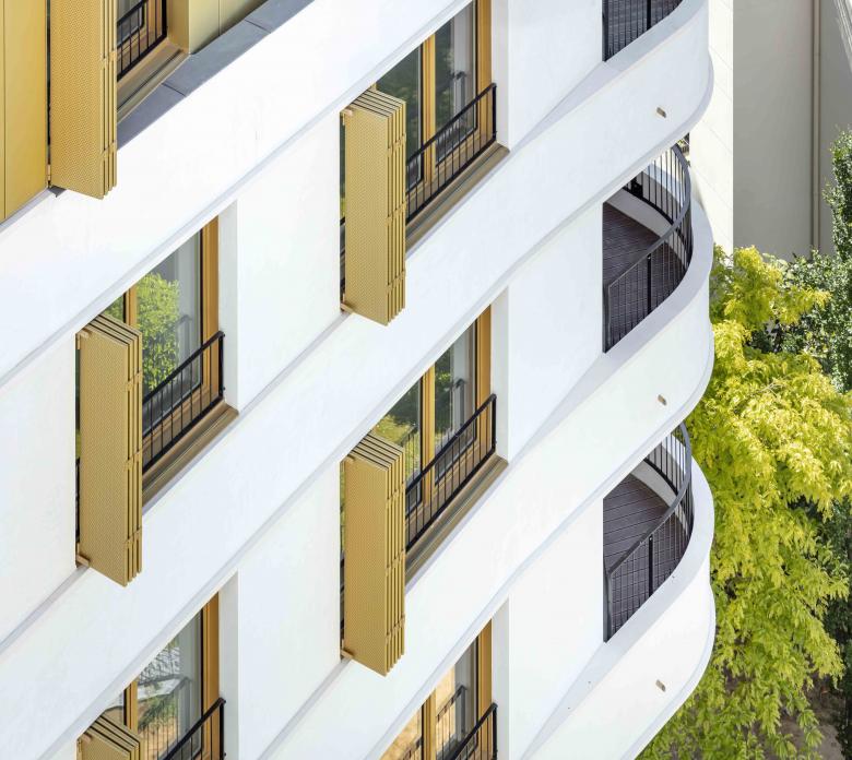 DIE PLACE FELIX EBOUE verfügt seit kurzem über eine neue Landmarke: Das neue Wohn- und Geschäftshaus am größten Platz im Osten von Paris schließt die Lücke zwischen einem modernistischen Gebäude und einem Haus der Belle Epoque. Unser Team in Paris hat es erreicht, den Übergang mit einer abschließenden Terrasse und einem anschließenden Turm sehr elegant zu formulieren: Das neue Haus präsentiert sich mit einer stark plastischen Architektur, deren Gliederung die Dynamik des Stadtraumes reflektiert. Es ist mit seiner weiß-schimmernden Fassade und den markanten Fensterläden mehr als nur eine Bereicherung für das urbane Leben. Ganz konsequent wird ein Raumfluss entwickelt, der vom Platz über eine Passage in den begrünten Hof führt. Die rigide Trennung zwischen Öffentlichkeit und Privatheit wird auf diese Weise zum Vorteil von Bewohnern und Passanten aufgehoben.