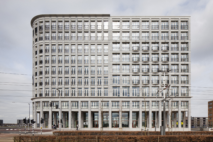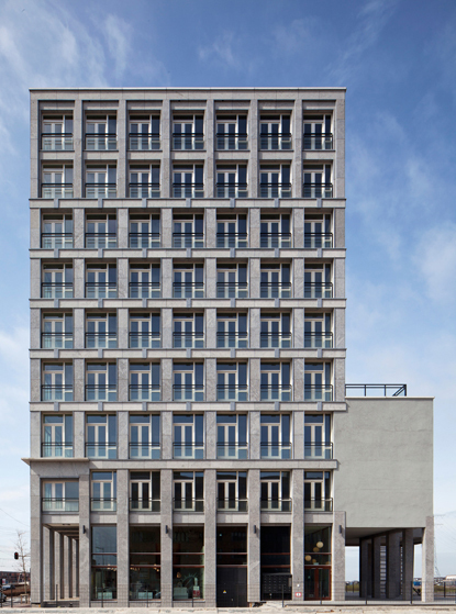 Nachhaltig flexibel – IJburg ist eines der großen Stadterweiterungsgebiete Amsterdams auf sieben künstlichen Inseln, geplant für 45.000 Menschen. Am Eingang des Haveneiland, der größten Insel, entstehen ab Herbst 2007 die »Solids«-Gebäude, eine Blockrandbebauung aus sieben Häusern. Diese kombinieren eine sehr hohe Bebauungsdichte – die vorgegebene Geschossflächenzahl von 6,4 ist vergleichbar mit Hochhausvierteln in Asien – mit einem frei gestaltbaren Grundrisskonzept. In seinem Erscheinungsbild knüpft das Ensemble an den klassischen städtischen Geschäftshaustypus mit Kolonnaden, Lochfassade, Balkonen und repräsentativer Steinverkleidung an. Das Gebäudeinnere ist demgegenüber fast radikal minimalistisch und auf die größtmögliche Freiheit in Nutzung und Raumaufteilung optimiert: Stahlbeton-Skelettbauweise, in Kernen zusammengefasste Treppenhäuser, Raumhöhen von sechs bzw. vier Metern ermöglichen die flexible Einteilbarkeit der Flächen. Alle Einbauten sind reversibel, tragende Zwischenwände statisch nicht nötig. Als Konstante ist das Tragwerk auf lange Lebensdauer ausgerichtet, während die technische Infrastruktur variabel und leicht an aktuelle Standards adaptierbar ist. Das Gebäude selbst gibt als funktionsneutrales »Gehäuse« nur den Rahmen vor, den jeder Mieter nach seinen Vorstellungen ausfüllt. Die loftartigen, bis zu 20 Meter tiefen Einheiten können als Büros ebenso genutzt werden wie als Hotel, für Praxen wie für soziale Einrichtungen, als Studios und Wohnungen. Ermöglicht wird so gleichermaßen die individuelle Gestaltung und einfache Anpassbarkeit an veränderte Anforderungen wie eine urbane Vielfalt und die Nachhaltigkeit im Gebrauch. Das Gebäudekonzept definiert mit dem Begriff »solide« Dauerhaftigkeit auch im funktionalen Sinn. Dass dies auch eine hochwertige und qualitätvolle Architektur umfasst, zeigt sich in der repräsentativen Fassade und den eleganten Foyers ebenso wie in der sorgfältigen Materialwahl und Detaillierung.