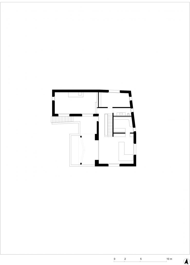 AM ANFANG war das orthogonale Volumen. Aus diesem wurde eine Form in der angemessenen städtebaulichen Dimension entwickelt, welche die Balance zwischen Privatleben und Einbindung in den öffentlichen Raum hält. Die Gebäudehülle wird durch gezielte Ausnehmungen – unter Berücksichtigung der Lage - definiert, um schließlich eine Ordnung zu finden, die das ruhende Volumen in einen Dialog zwischen Öffnungen und geschlossenen Flächen bringt.