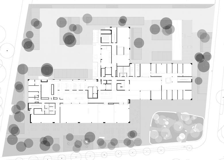 Die geschickte Lenkung der Funktionen ermöglichen einerseits ungehinderte logistische Abläufe und andererseits grosse Aufenthaltsqualitäten für den Aussenraum.