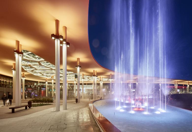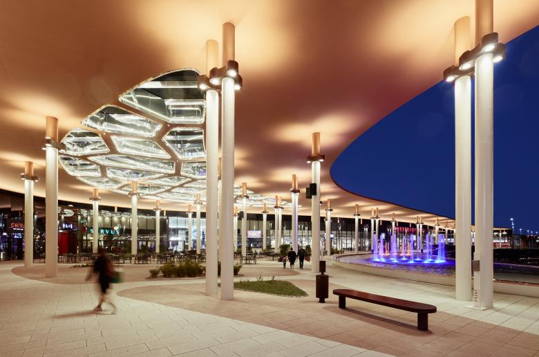 The PADO Galleries provide around 21,000 square metres of rentable space for about 30 shops. The architects have created a pleasant, clearly organised atmosphere in the interior. The tenant mix includes numerous high-quality brands. The highlight of the PADO Galleries and PADO Shopping Park is an outstanding food court. On 32,000 square metres in total, customers not only find an array restaurants, but also a spacious covered outdoor terrace with an event area and a large animated water surface. This synergy between shopping and gastronomy gives the project a special flair and creates a unique experience for visitors. Additionally, 800 partially shaded parking spaces are available.