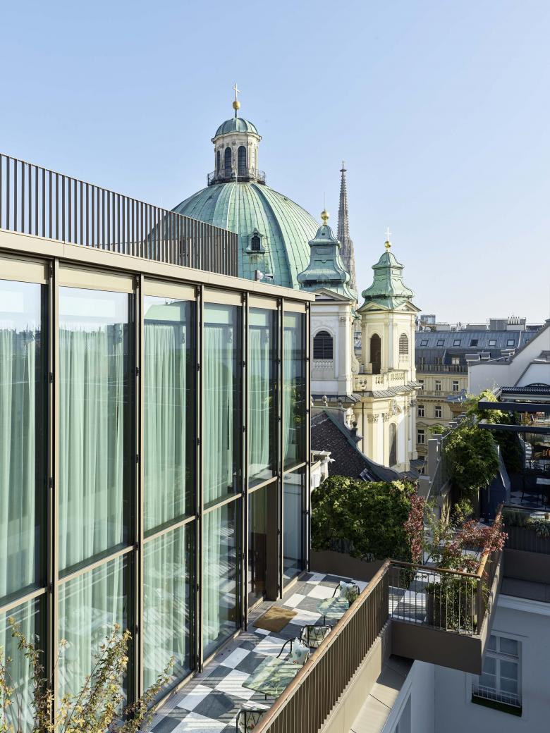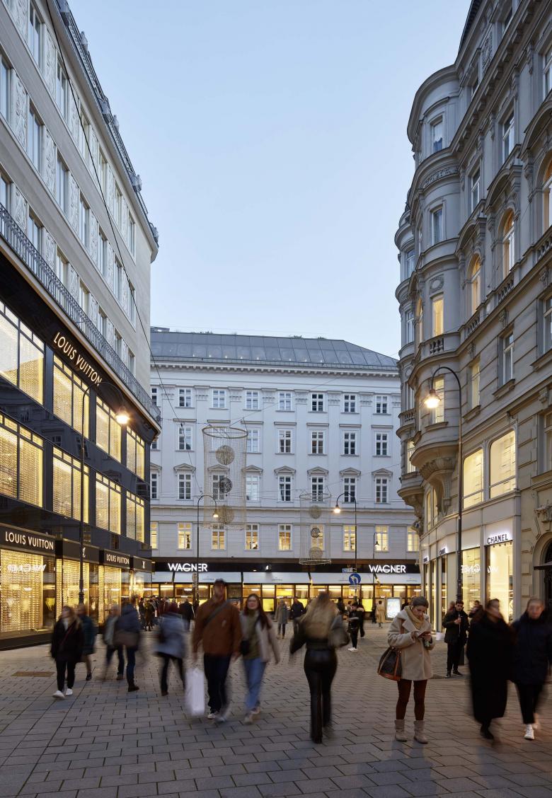 Im Herzen der Stadt haben BEHF Architects vier historische Bestandsgebäude aus unterschiedlichen Epochen innenräumlich zu einem Haus vereint. Der Häuserblock befindet sich zwischen Petersplatz und Peterskirche, Milchgasse und der Fußgängerzone Tuchlauben und Graben. Zuvor dienten die Altbauten, darunter das 1839 von Alois Pichl errichtete große Sparkassengebäude, als Hauptsitz der Erste Bank. BEHF Architects haben die Bestandsflächen zusammengefügt und für ein Fünf-Sterne-Hotel adaptiert. Die Authentizität des Gebäudes wurde erhöht und eine neue Präsenz mit historischer Struktur in der Wiener Altstadt kreiert.