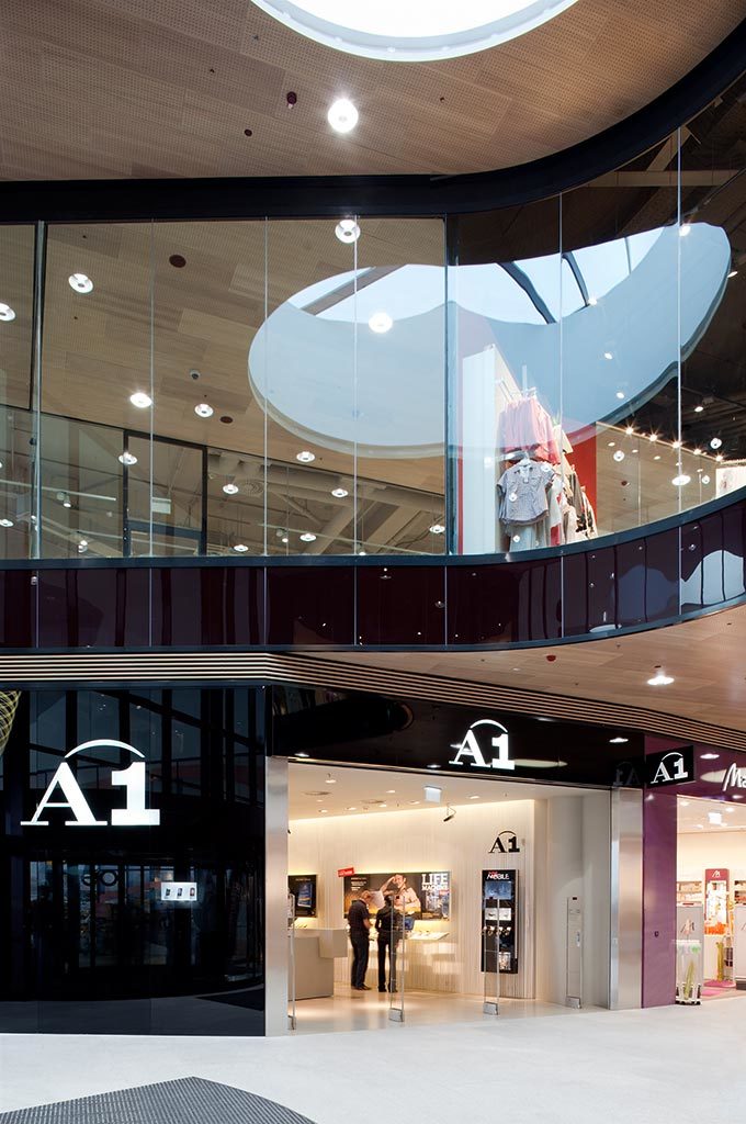 "Offer on the inside, what you promise on the outside" - another founding idea of the concept. A promise the building makes to the region as a shopping magnet. The design language is modern, diversified and dynamic in every aspect. This is clearly reflected in the way movement networks were planned throughout the property. The colour range confidently adapts to different moods and seasons. The distinctive form and colour of the facade turn it into a landmark - increasing its effectiveness and appeal as a shopping magnet. The manifold depths of the facade mirror the diversity which can be found on the inside.