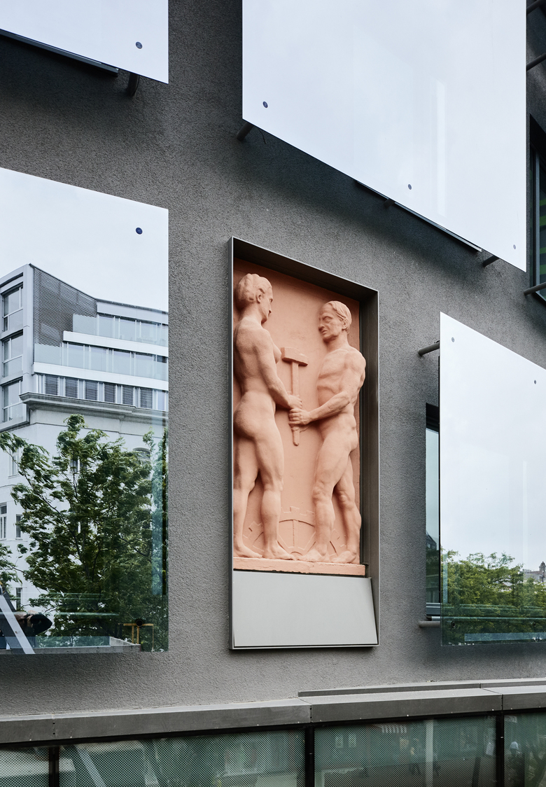 Both side wings of the rotunda were integrated in the whole building complex, taking urban development into consideration. The reliefs, made by the famous sculptor Anton Hanak, were restored, preserving the original architecture and then carefully integrated into the new full thermal protection facades.