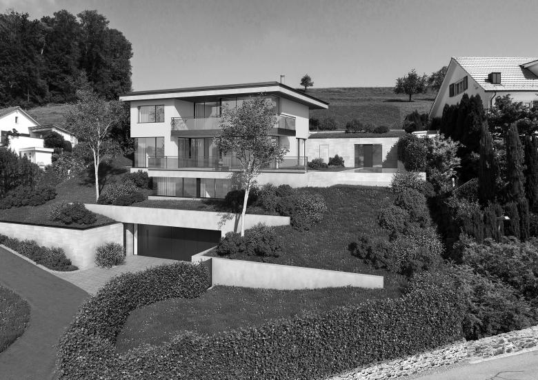 Das Grundstück der privaten Villa in Herrliberg befindet sich im Steilhang. Der Bau fügt sich seiner Topografie und so besteht dieses Projekt aus einem mehrgeschossigen Einfamilienhaus. Die Lage des Baus verfügt über eine vorzügliche weite Seesicht. Der Bezug zur Natur und Seesicht ist somit von zentraler Bedeutung. Die Balance zwischen Weitsicht und Privatsphäre zeichnen den Bau. Die Verwendung von natürlichen und kontrastreichen Materialien kennzeichnen das Projekt mit charakteristische Gestaltungselemente. Das Projekt ist ein vollumfängliches Design von Aussenraum und Innengestaltung.