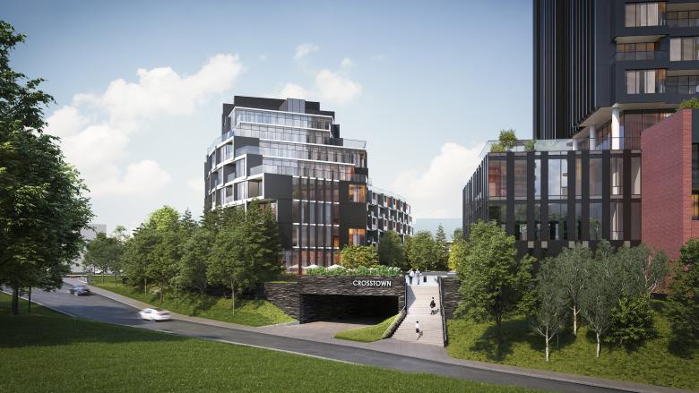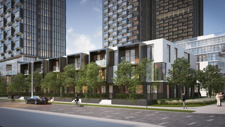 Block 12 represents the first phase of the Wynford Green master plan at Don Mills and Eglinton which will add approximately 5,000 residential units in nine towers ranging in height from 15 to 44 storeys, three mid-rises of 8 and 9 storeys and several blocks of 3 and 4 storey townhouses.
