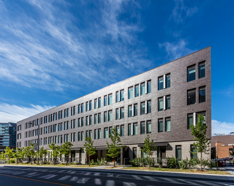 This Toronto Community Housing Corporation affordable housing development comprises a three building complex with 243 family units. The development will provide 128 units designated for seniors and senior-couples. This project is the first development underway in the West Don Lands Development Area.