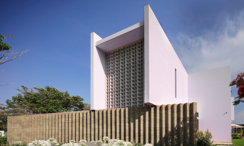 El esquema es cerrado, casi ciego, hacia el interior del fraccionamiento y abierto, casi indiscreto, hacia las áreas verdes y la vista de la Laguna. Los muros, casi ciegos, en la fachada norte, la protegen de las vistas desde el interior del fraccionamiento y la celosía de la escalera, con calculada discreción, permite las vistas hacia el cerro de San Juan Cosalá. La fachada sur, en cambio, se descubre bruscamente para buscar las escasas vistas sobre las casas escalonadas que la anteceden en el frente de la laguna y para lograr una estrecha convivencia con las áreas verdes que circundan la construcción. Los muros toman el color rosado, carácterístico de los atardeceres en Chapala, tanto en el exterior como en el interior; de esta manera el arte y la ornamentación, son prescindibles, creando así una atmósfera surrealista que inunda la vida cotidiana de sus habitantes.
